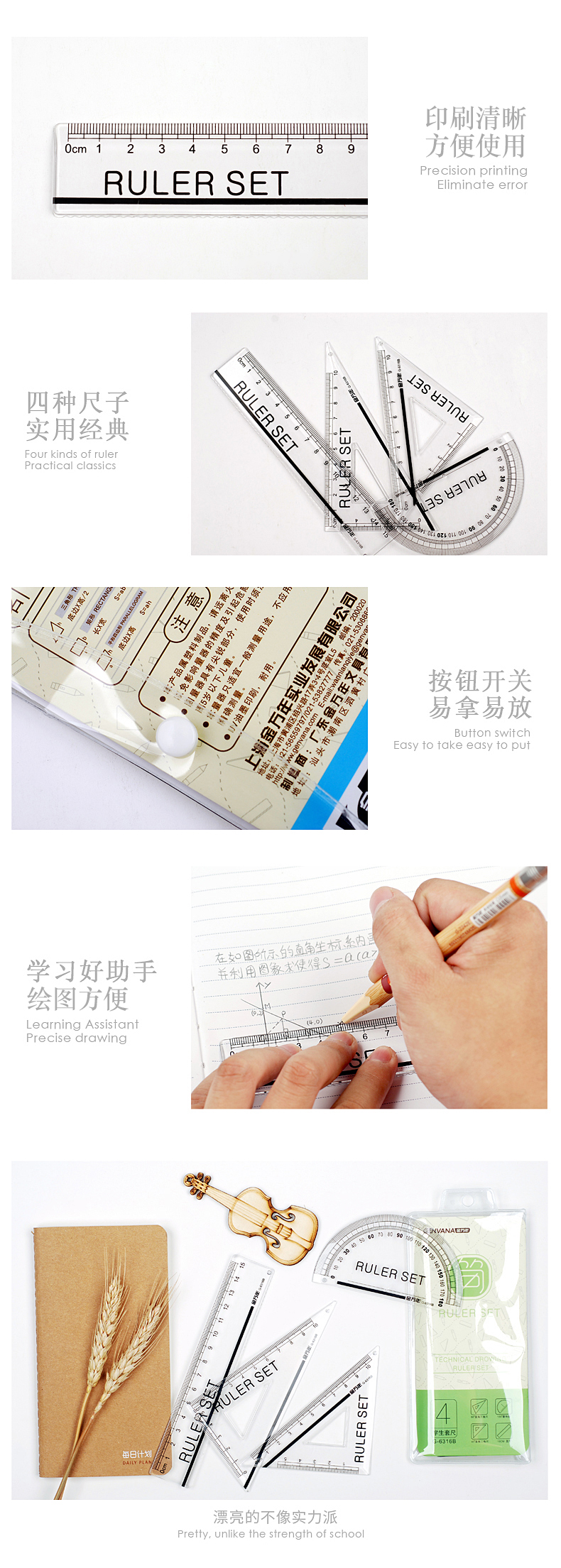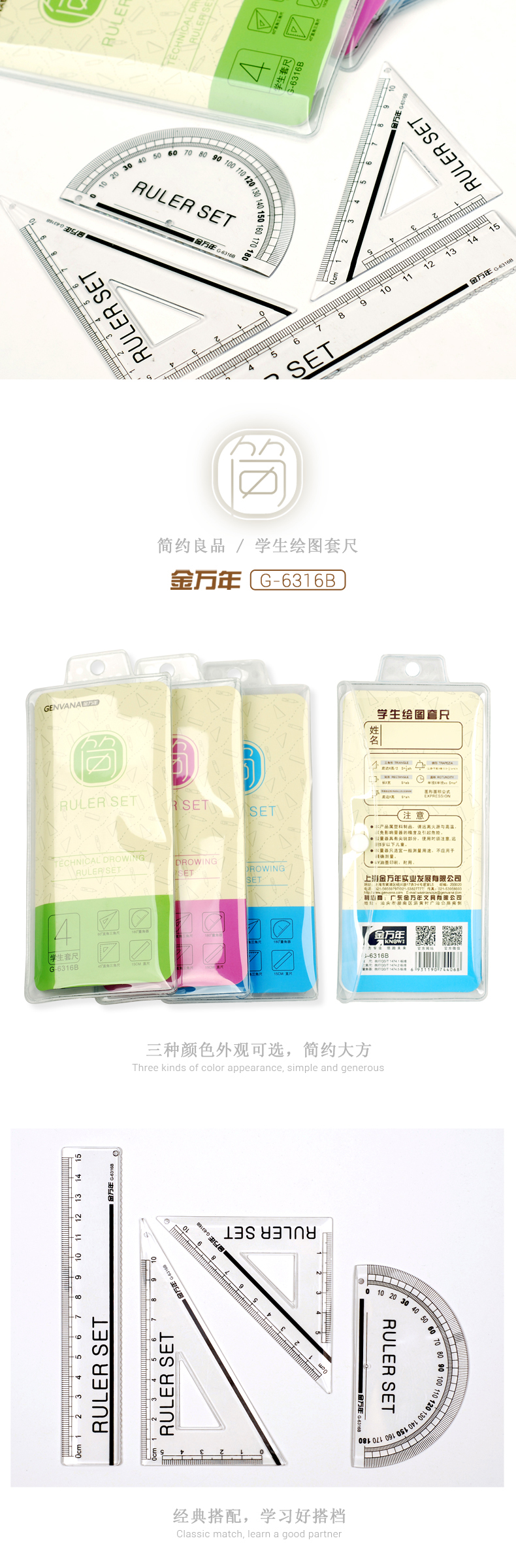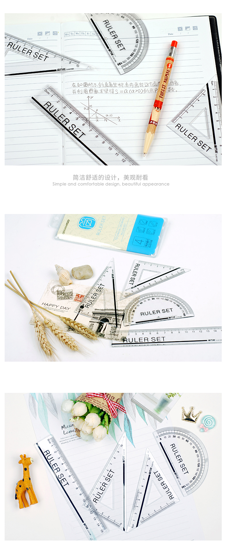 简色立体四件透明袋装套尺