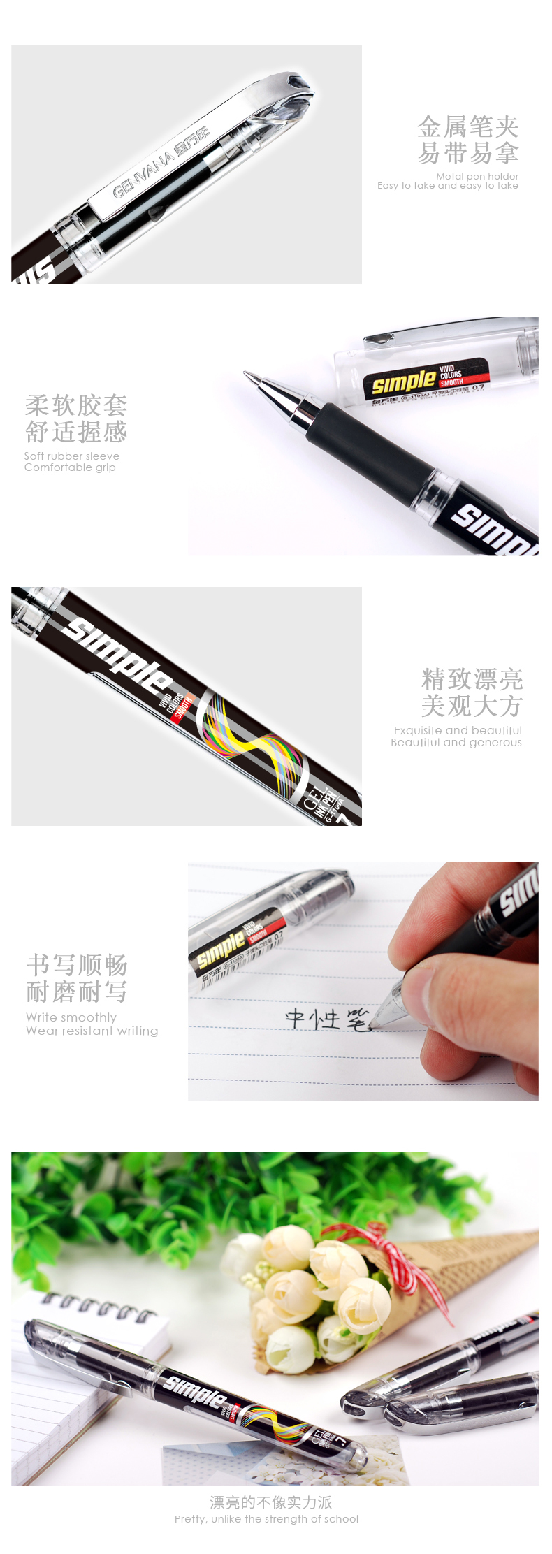 简意0.7MM子弹配RS07系列芯铁夹拔帽中性笔