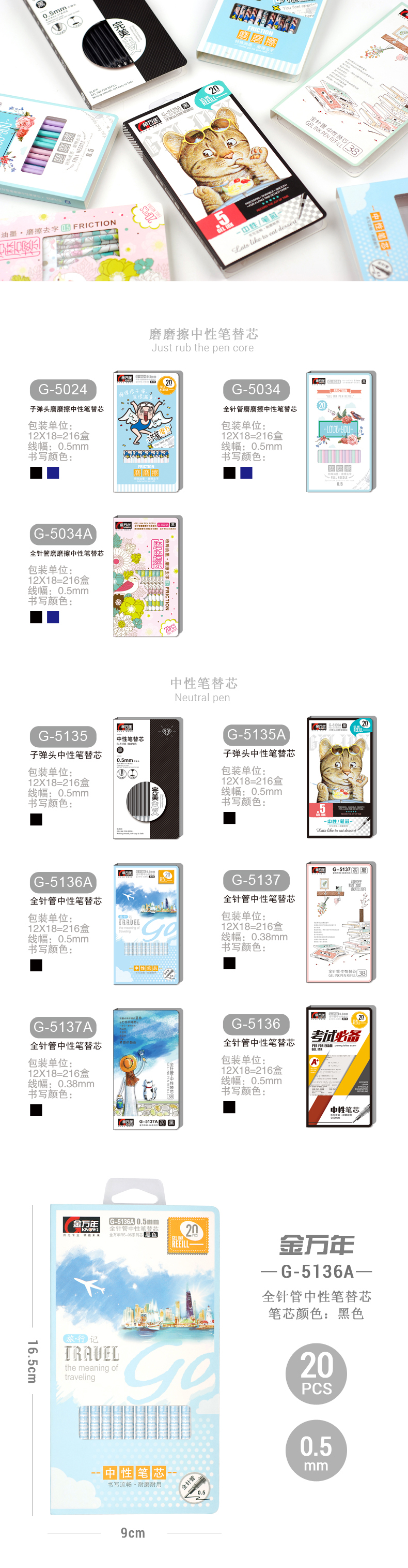 旅行记20支装0.5全针管RS06系列中性芯