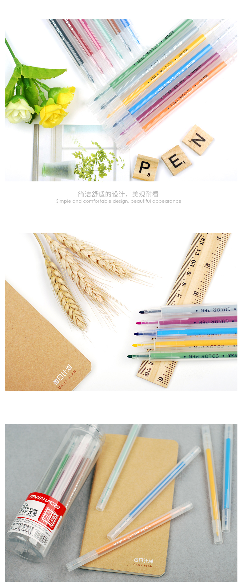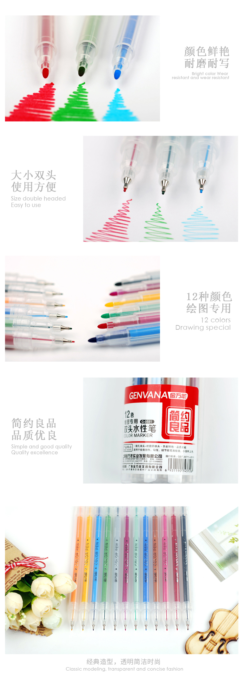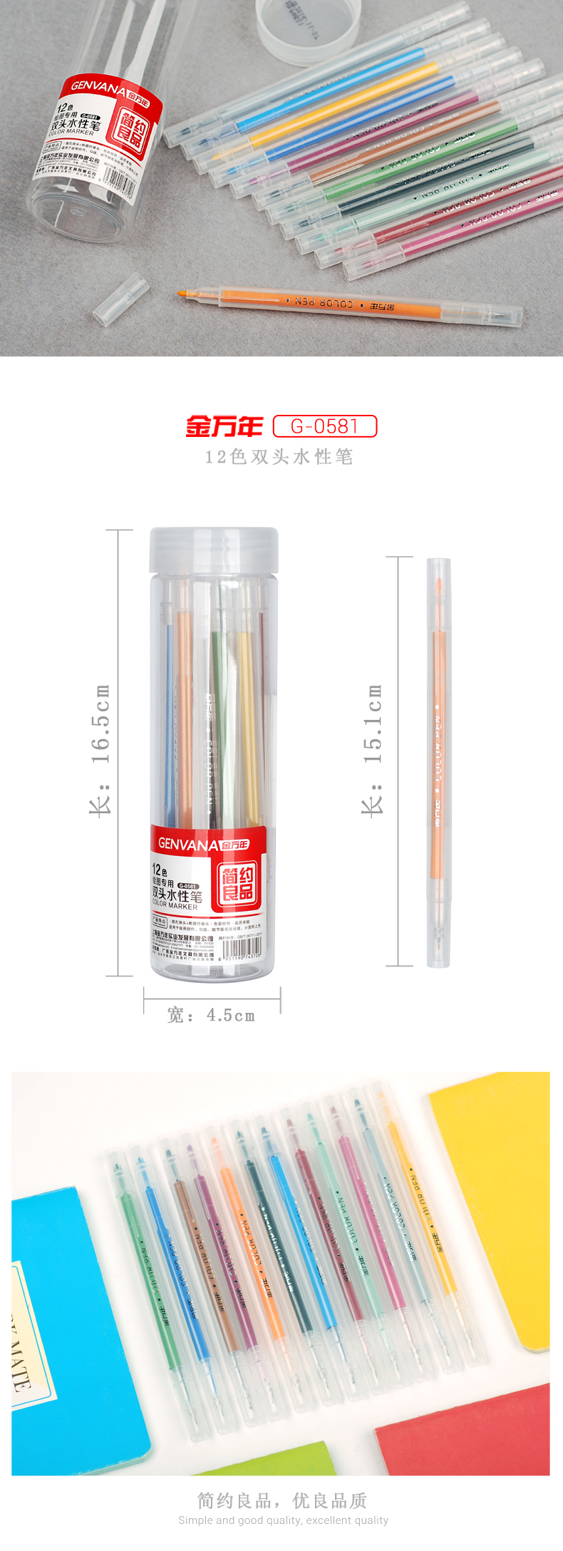 简约良品双头书写12色套装彩色水性笔