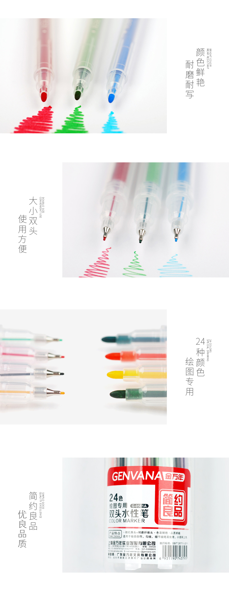 简约良品双头书写24色套装彩色水性笔