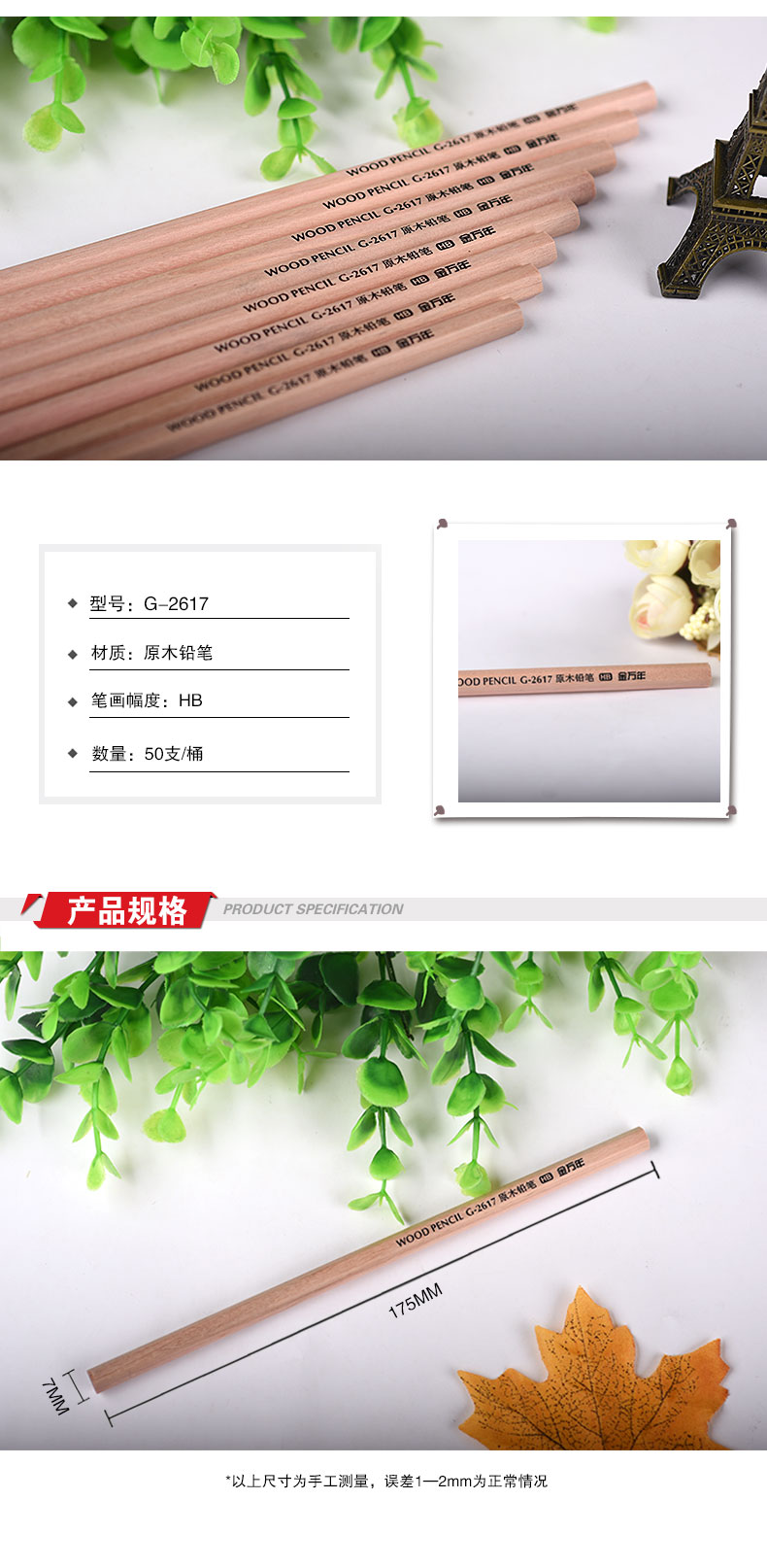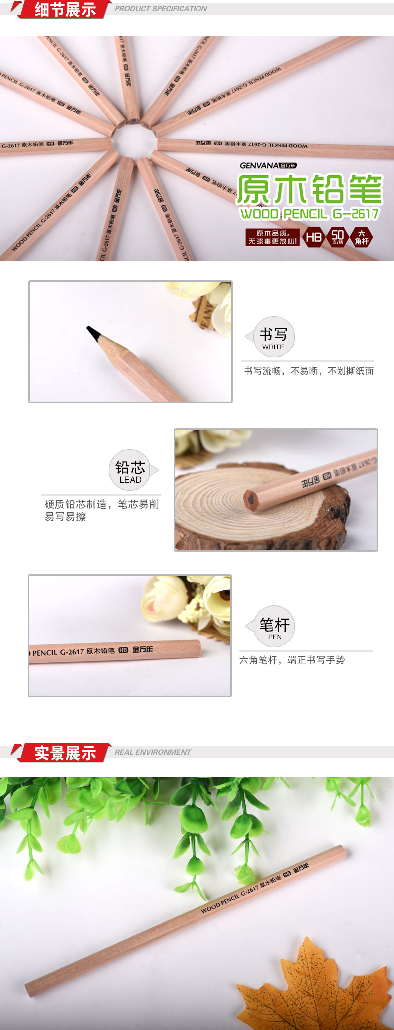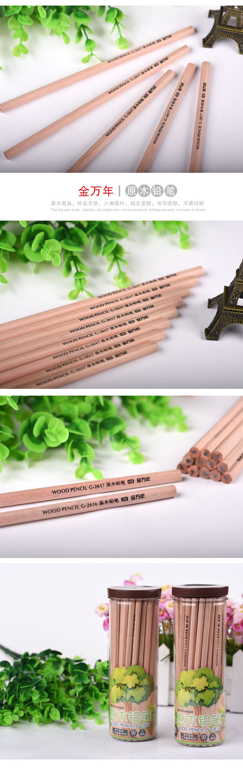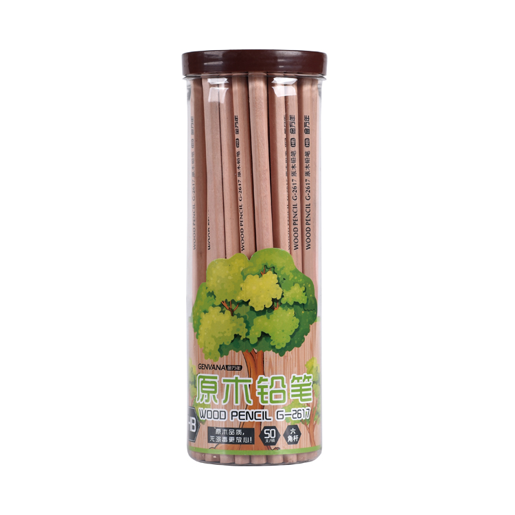 HB六角形原木无漆毒50支筒装木杆铅笔