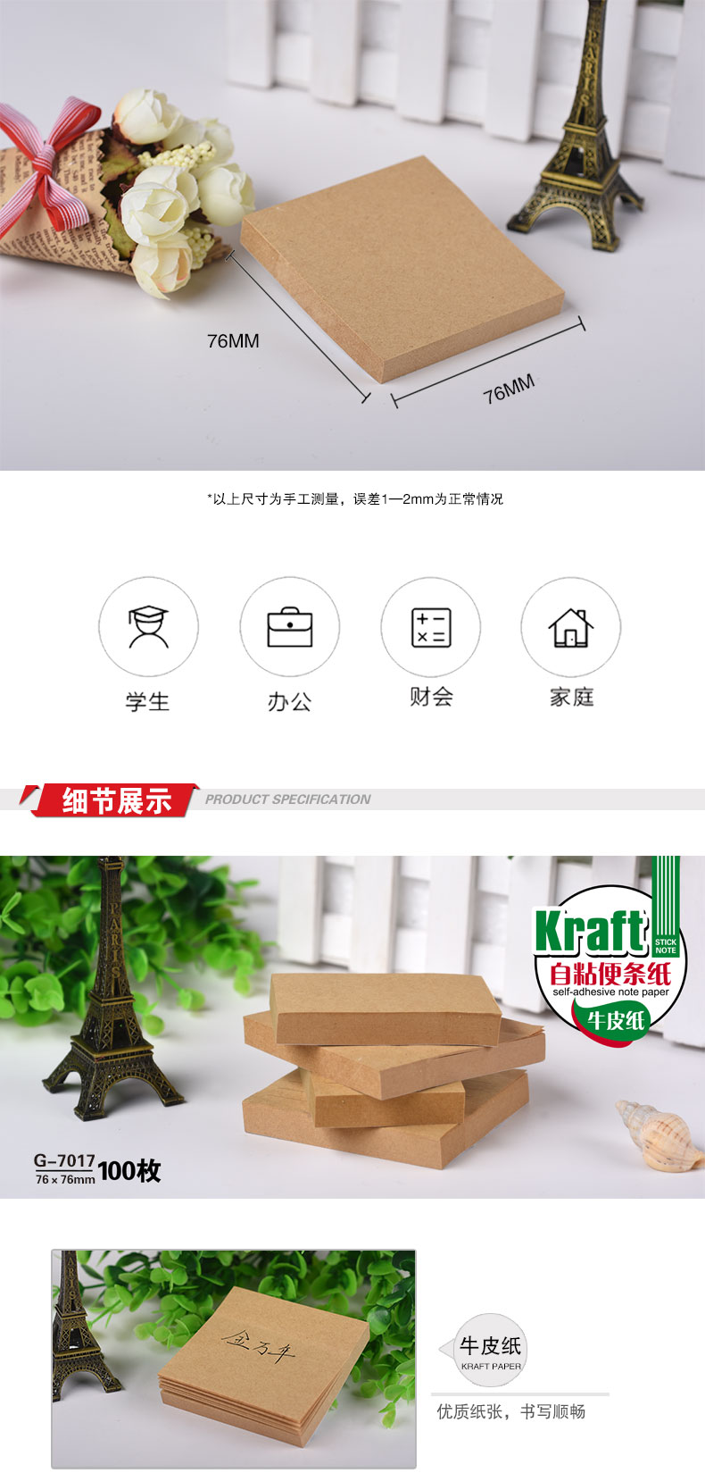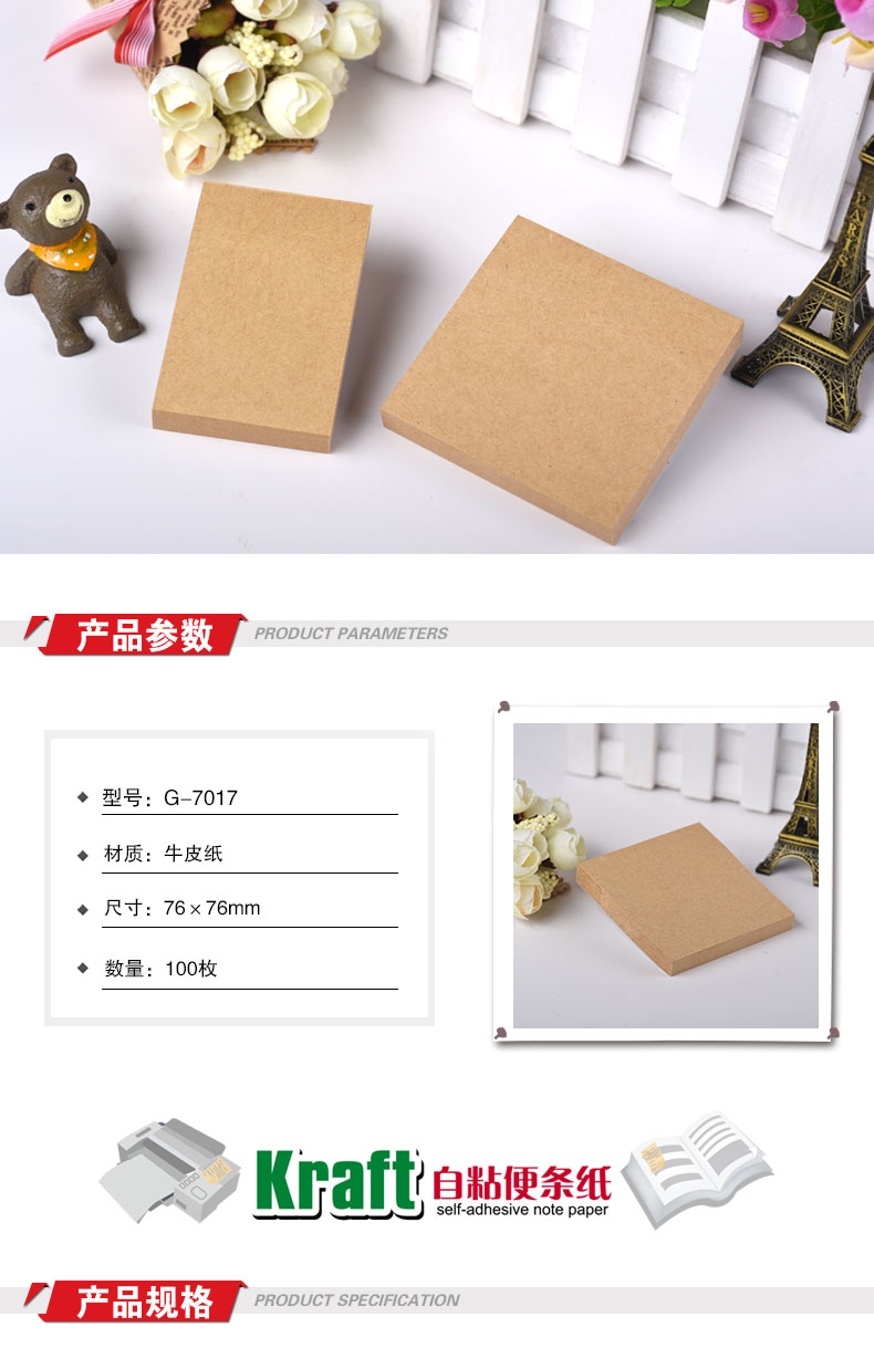 76x76mm牛皮纸自粘便条纸