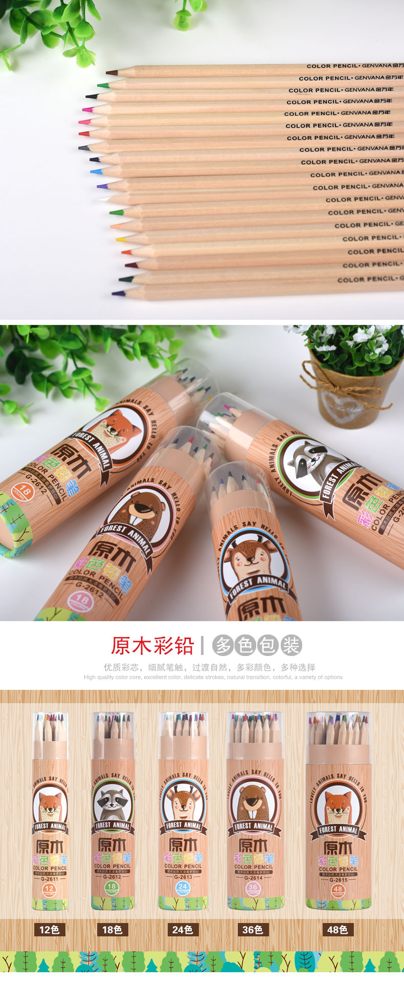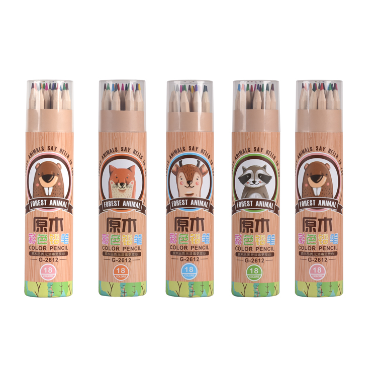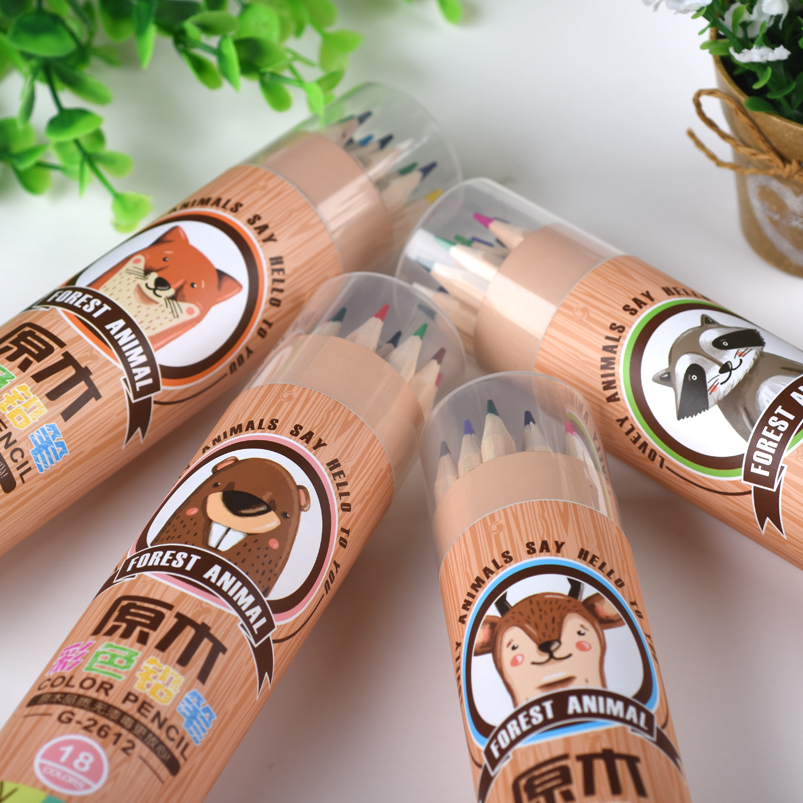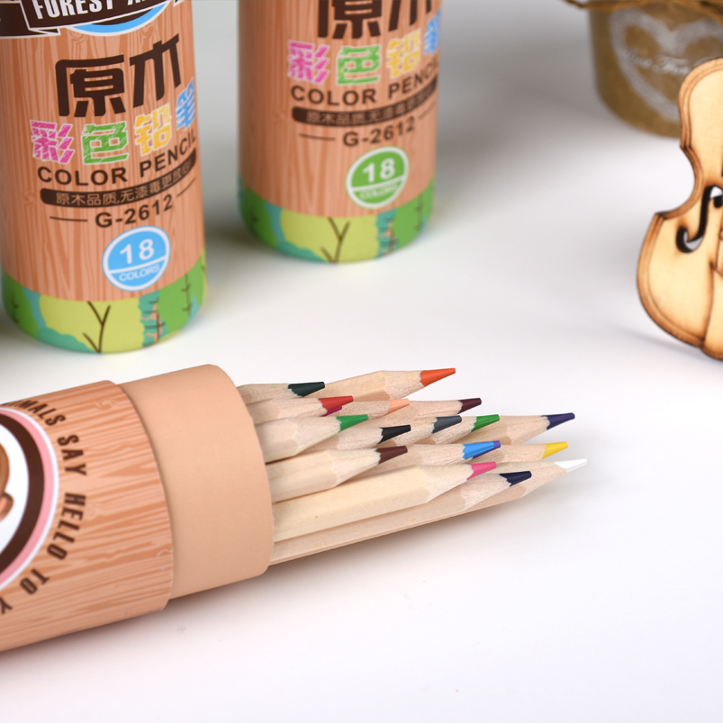 原木彩色铅笔圆纸桶装18色木杆铅笔