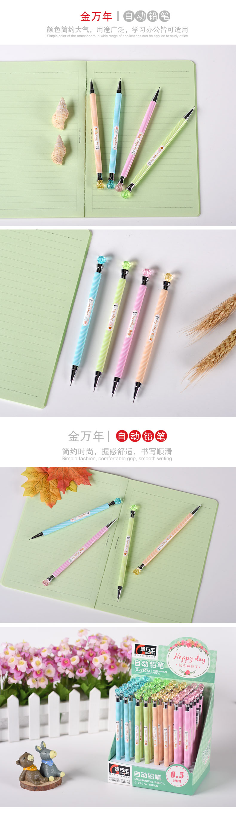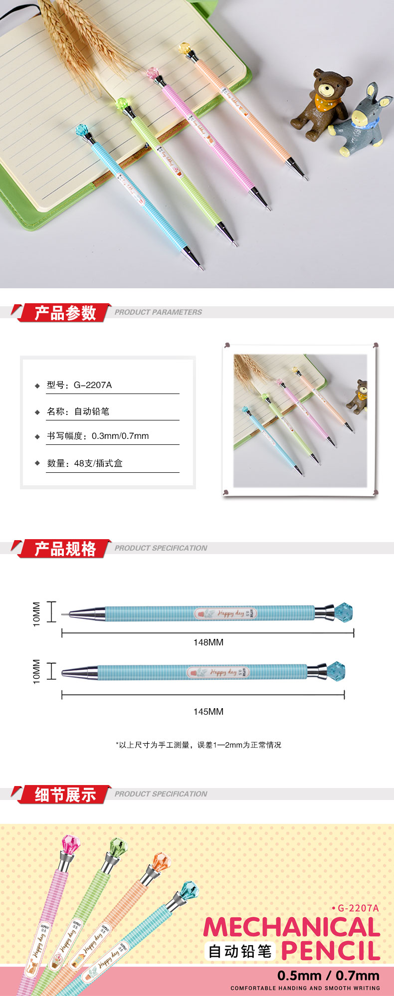 水晶按钮快乐条纹0.5/0.7mm自动铅笔