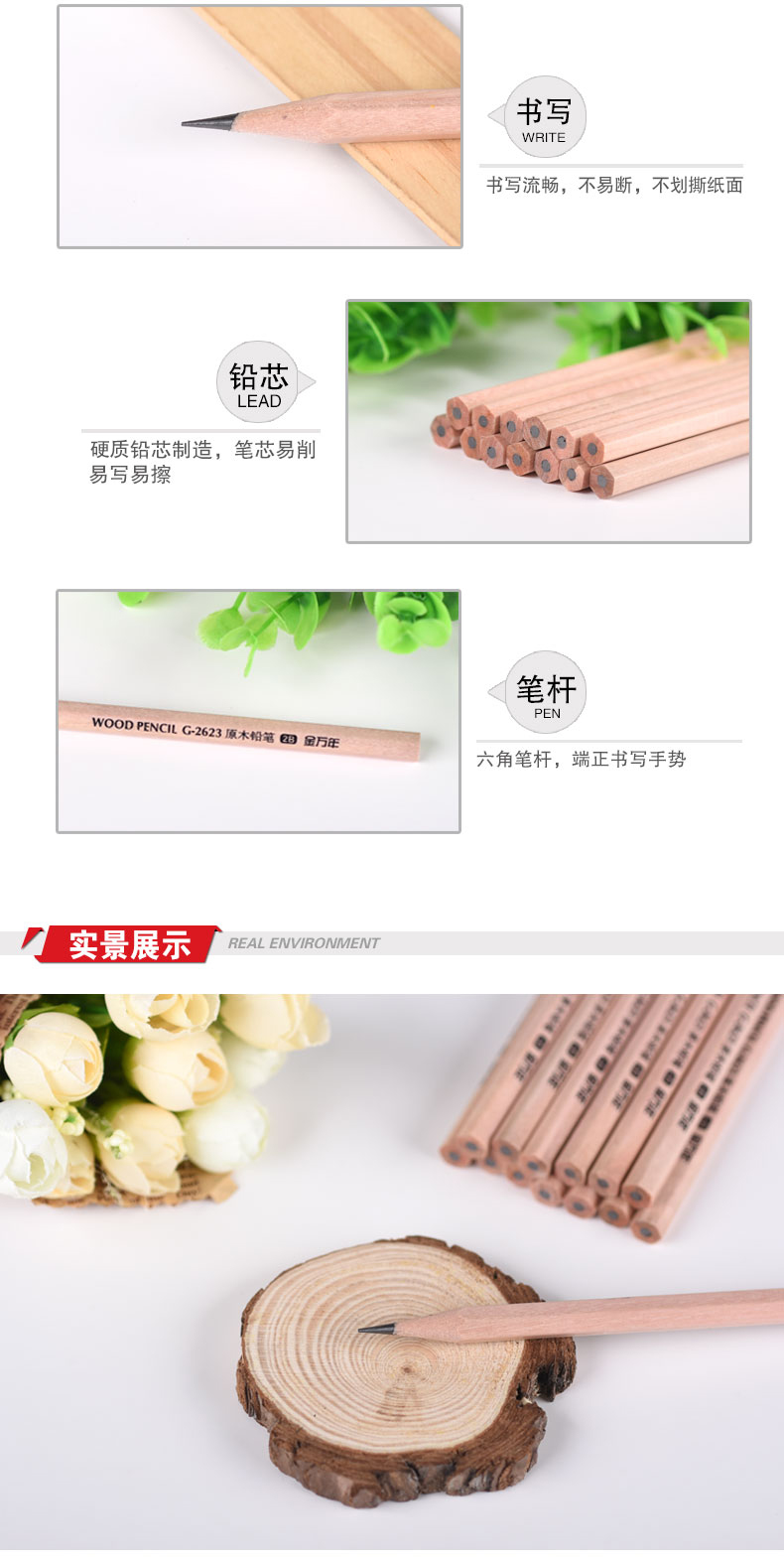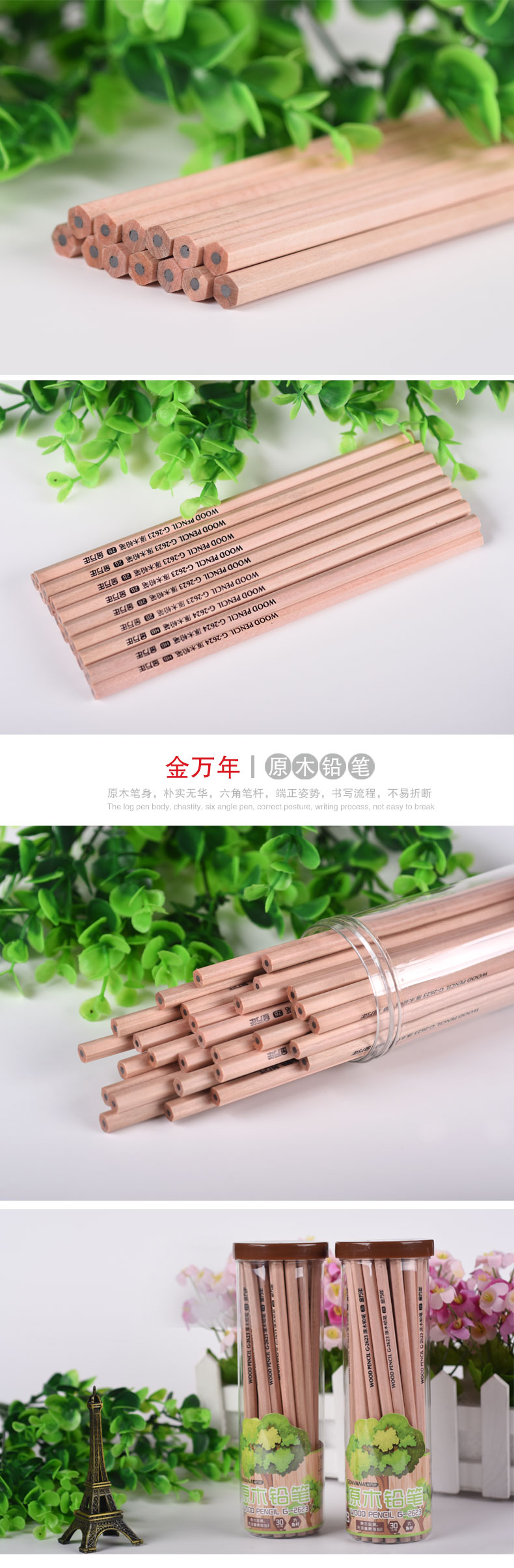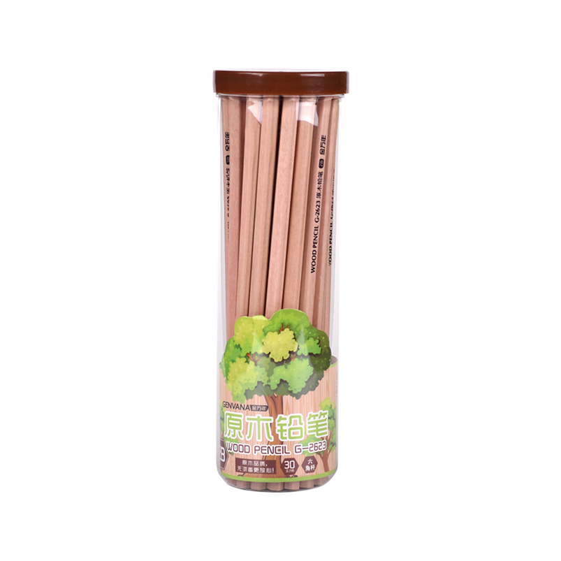 2B六角形原木无漆毒30支筒装木杆铅笔