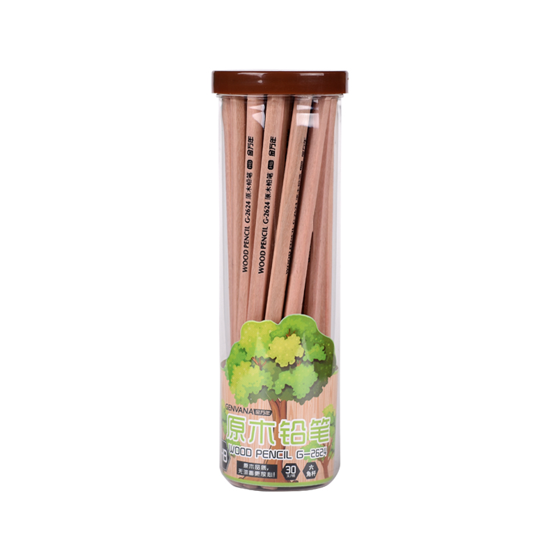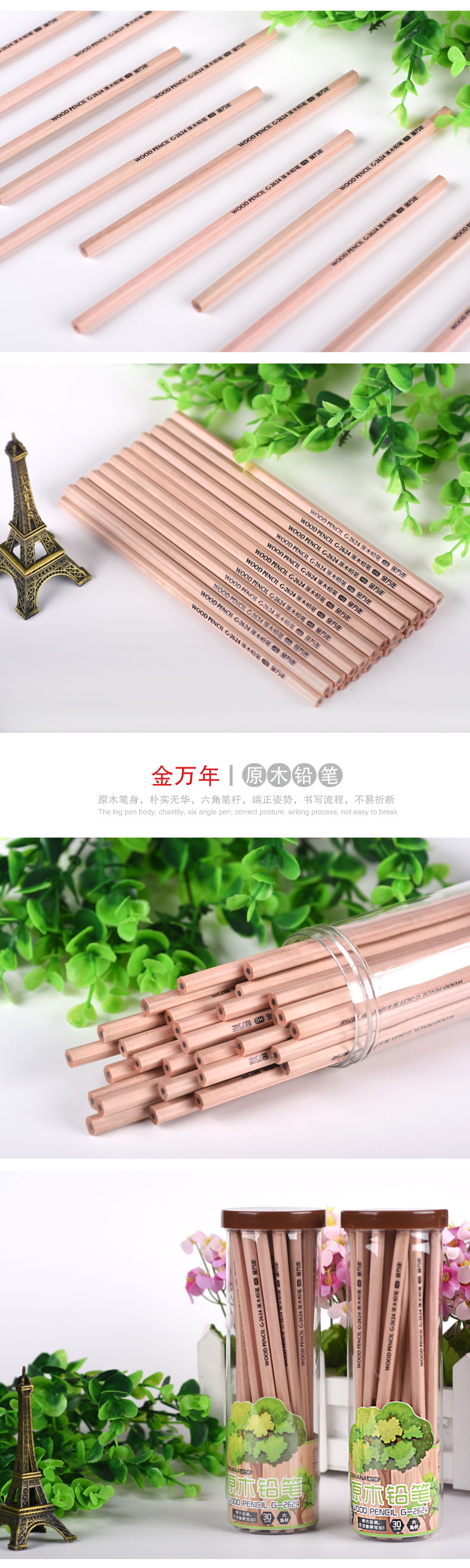HB六角形原木无漆毒30支筒装木杆铅笔