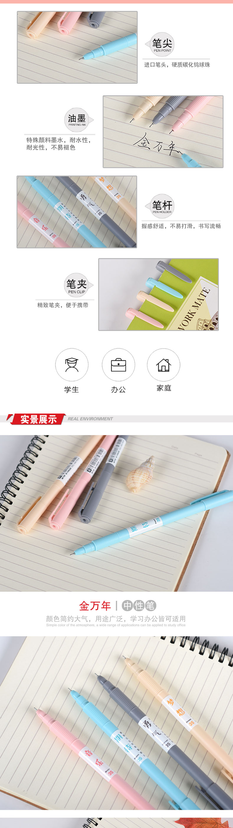那一年长笔夹0.35mm配RS06系列芯拔帽中性笔