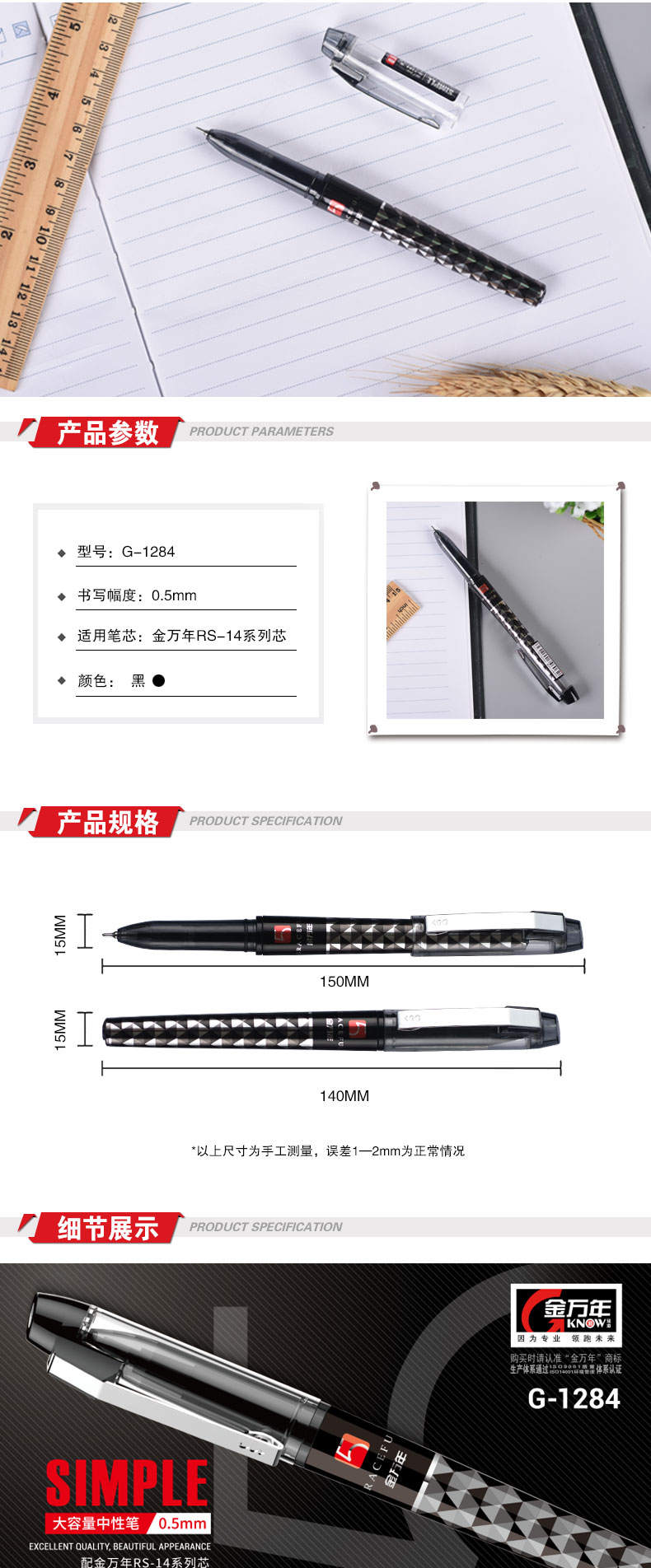 优签橡胶漆0.5mm子弹配RS09芯金夹拔帽中性笔