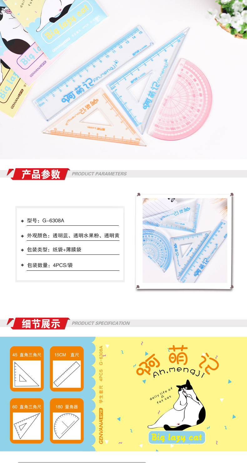 轻彩立体四件透明光膜袋装套尺