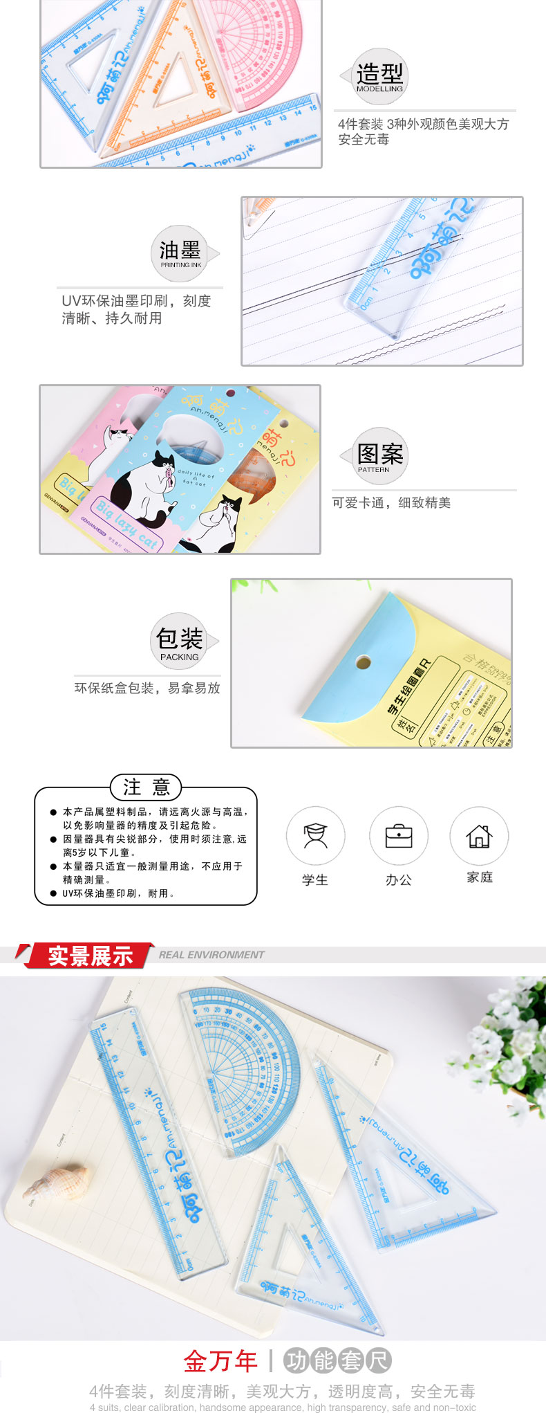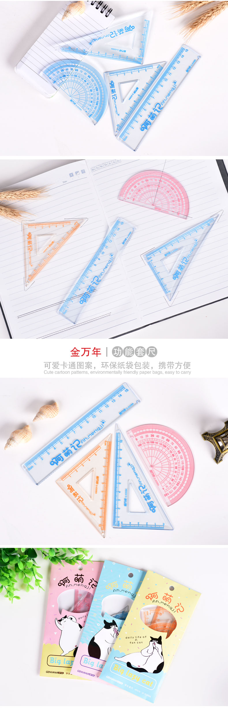 啊萌记立体四件纸袋装套尺