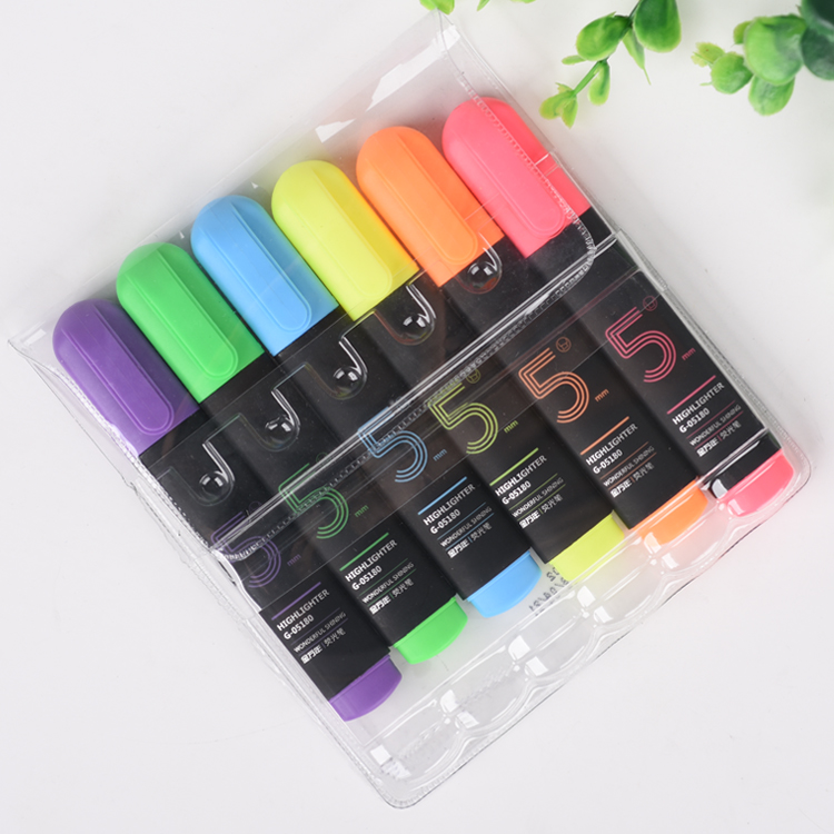 哑光黑多彩单头6色套装荧光笔