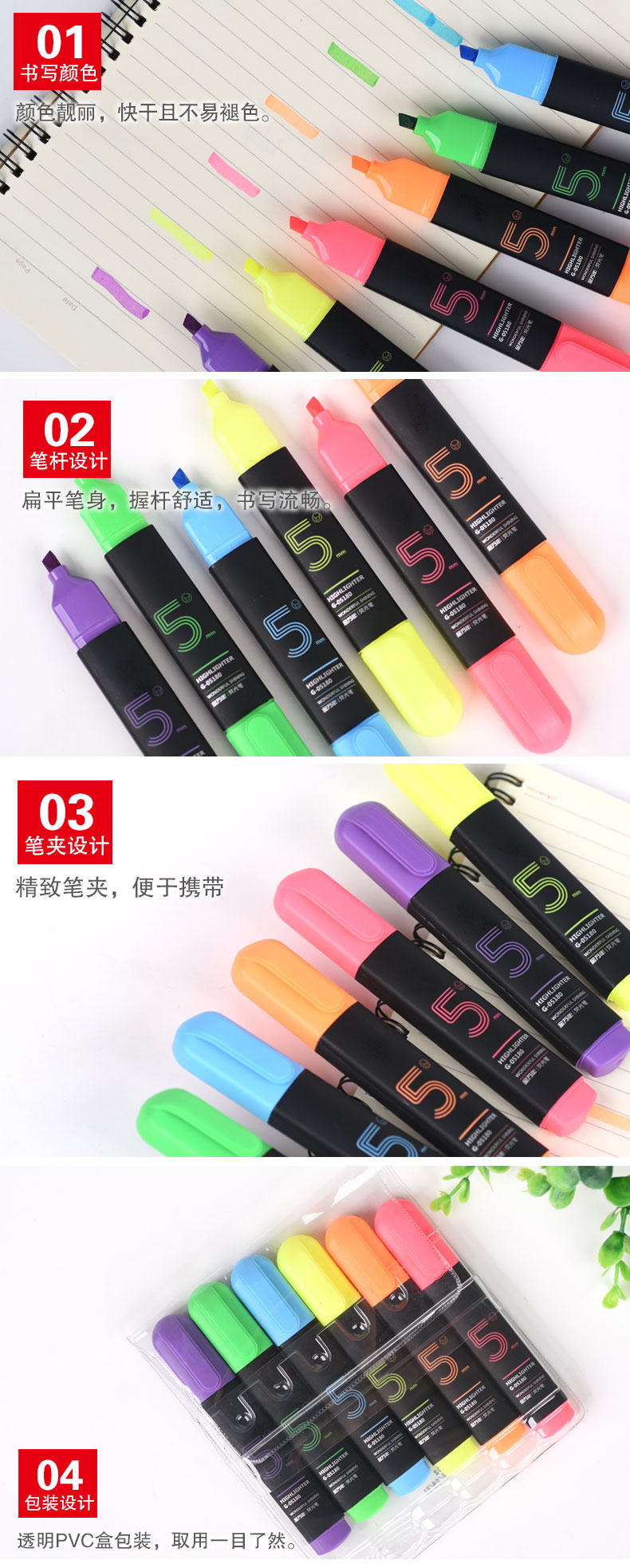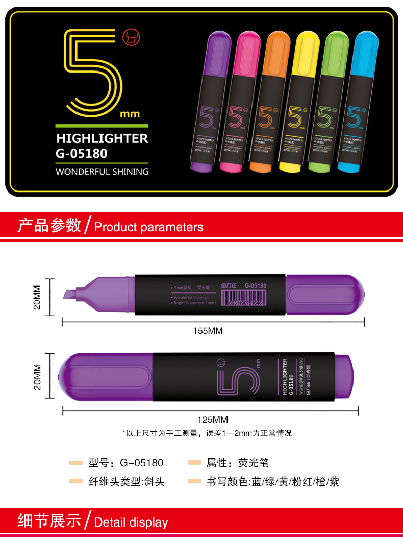 商品属性 产品参数: 书写幅度:5mm 外观颜色:多颜色