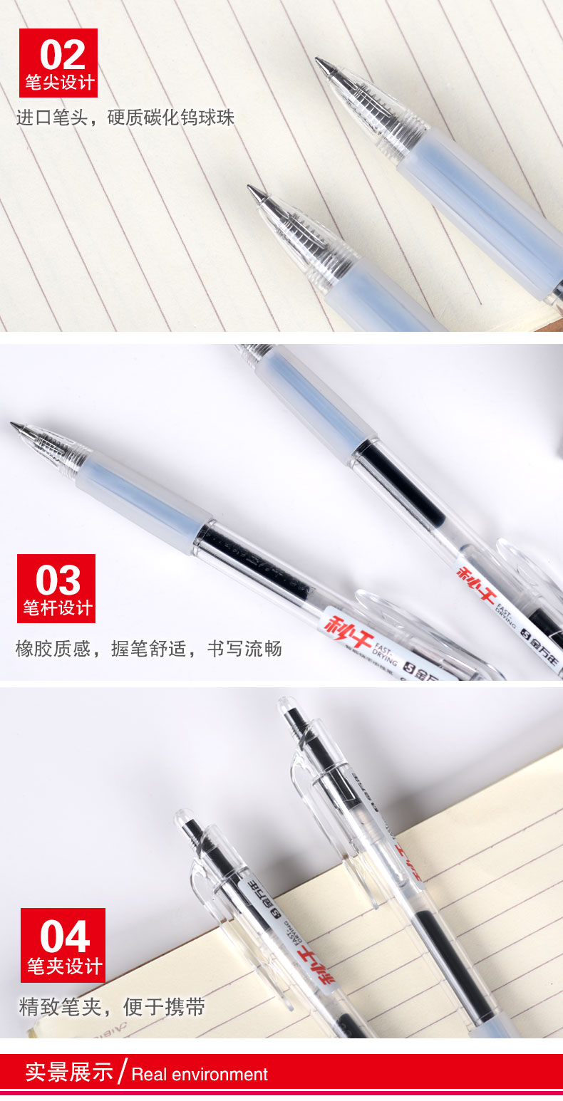 秒干椭圆夹0.5子弹头配RS09芯按压中性笔