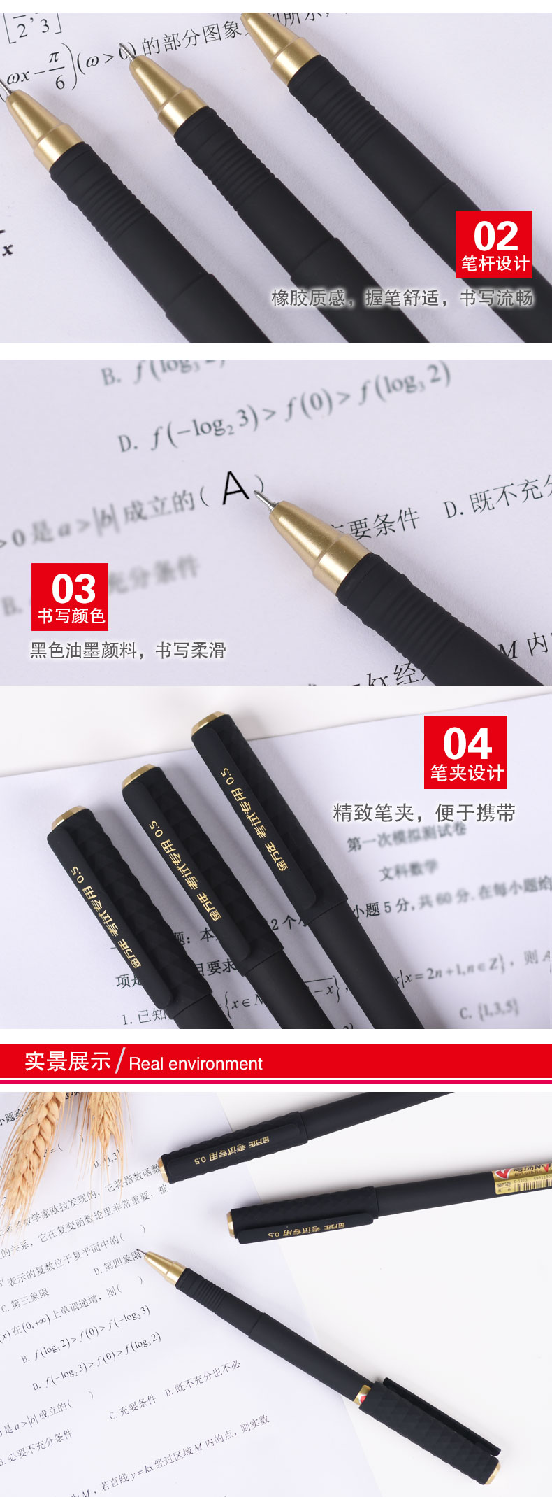 优签橡胶漆0.5mm子弹配RS09芯金夹拔帽中性笔