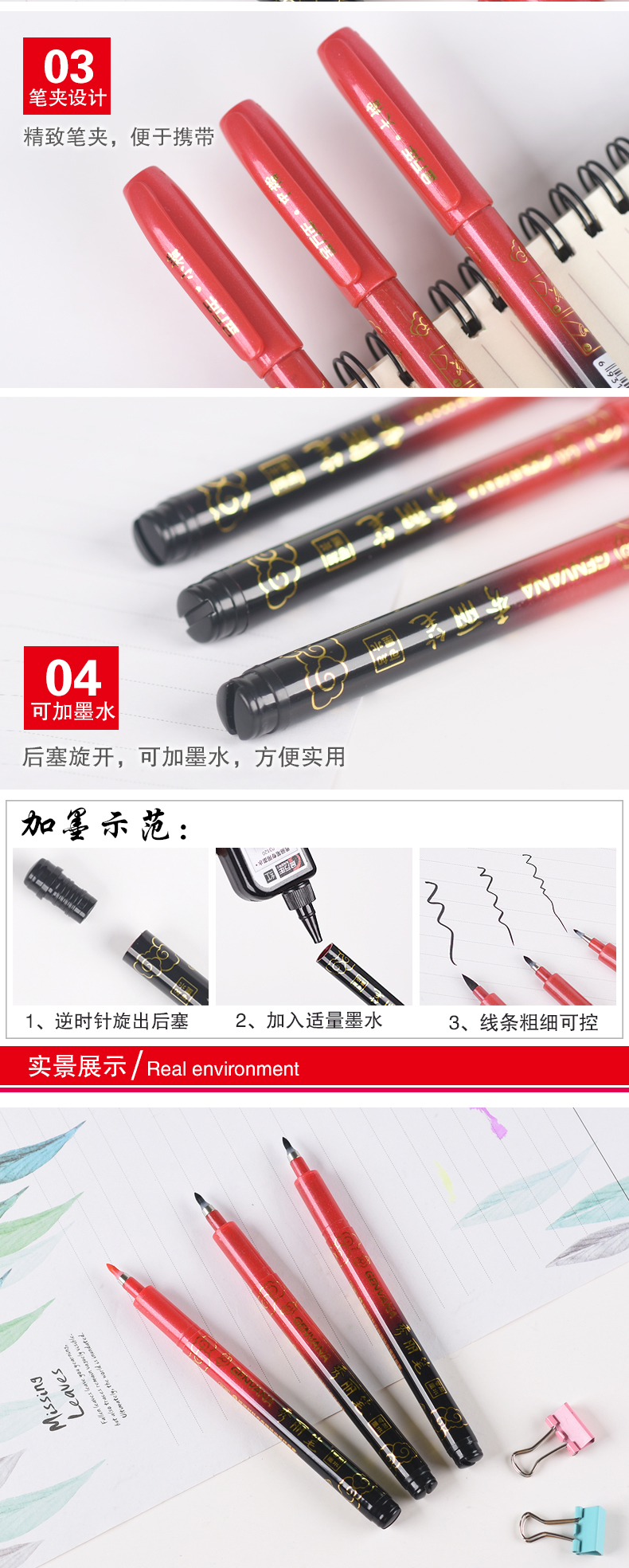 商品属性 产品参数: 颜色:黑色 书写幅度:中楷 外观颜色:红色