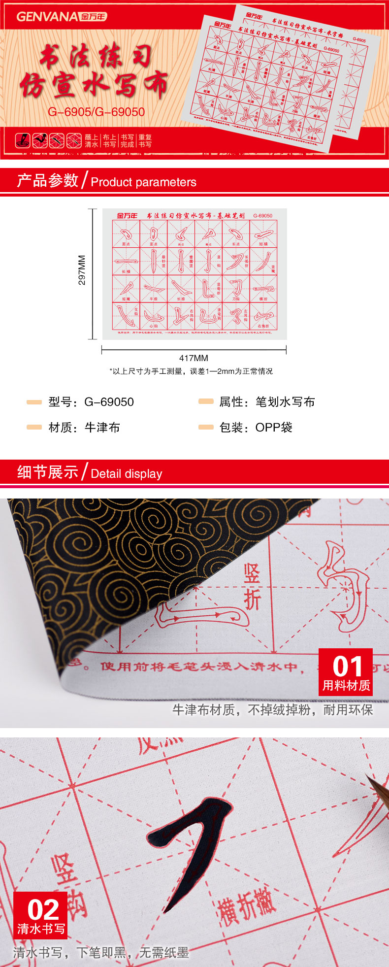 基础笔划书法练习仿宣水写布(G-69050)