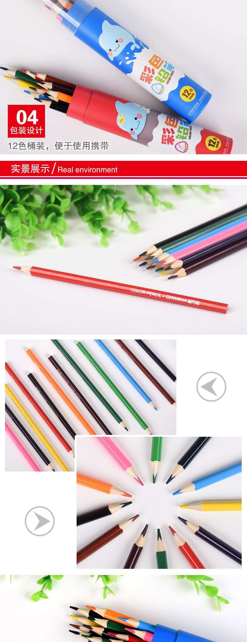 跳跳海豚三角木杆圆纸筒12色彩色铅笔(G-2628(12))