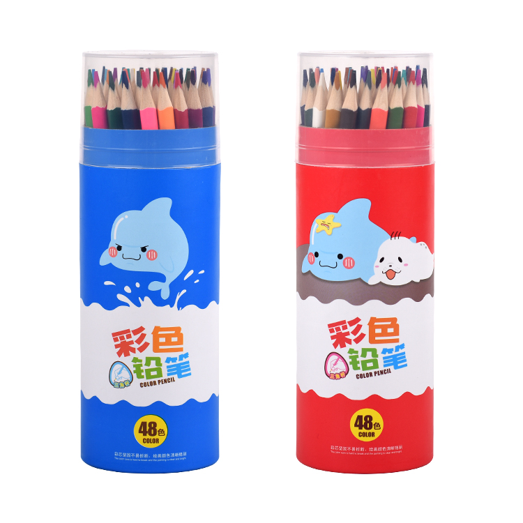 跳跳海豚三角木杆圆纸筒48色彩色铅笔(G-2631(48))