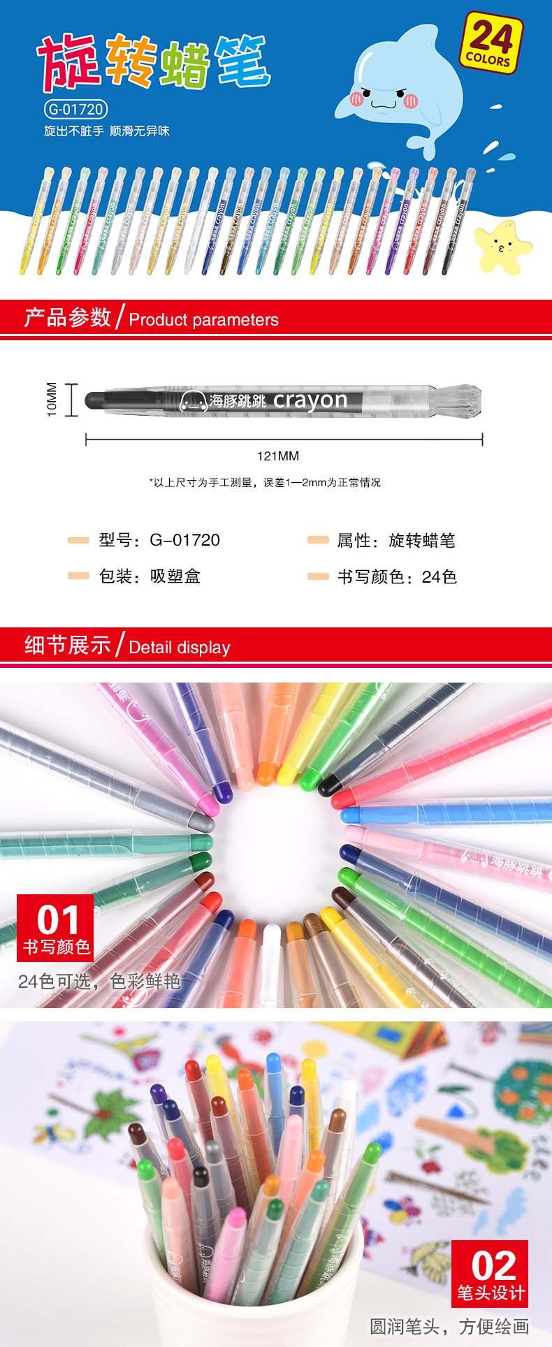 海豚跳跳短杆24色套装旋转蜡笔(G-01720)