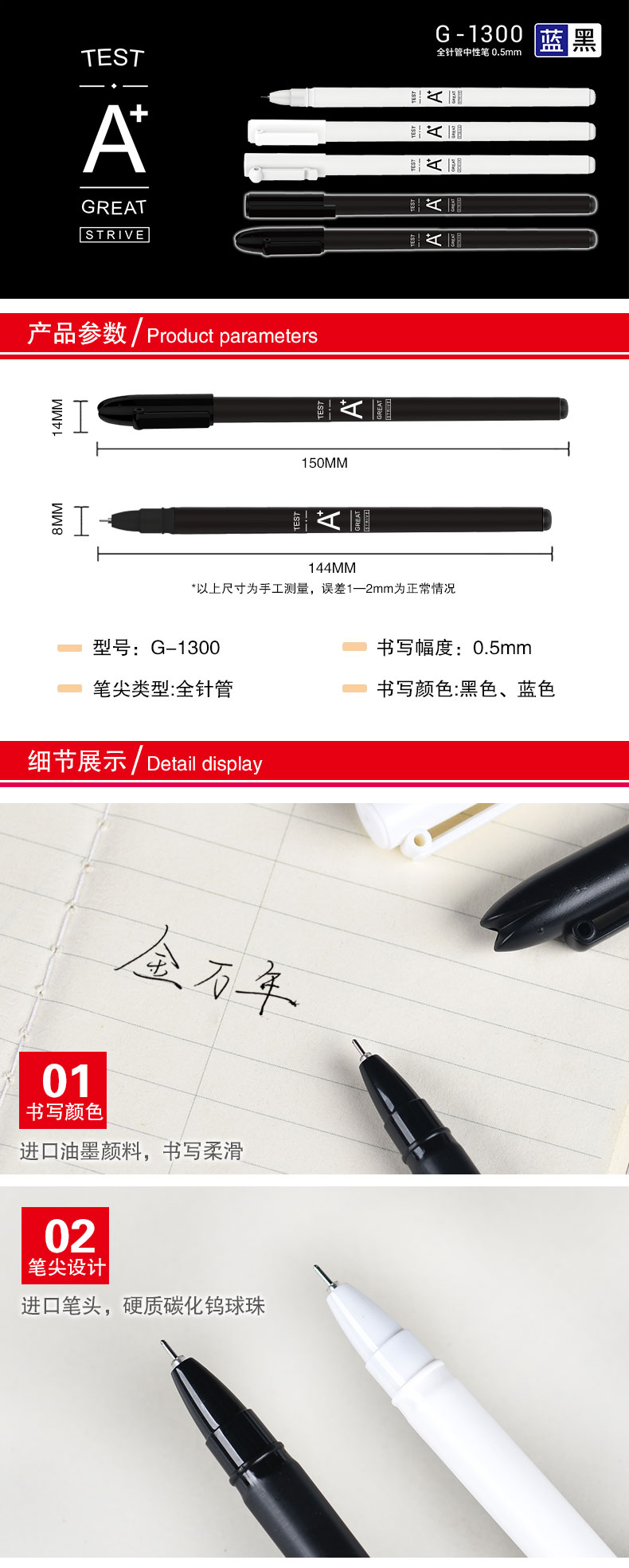 A加0.5全针管配RS06芯拔帽中性笔(G-1300)