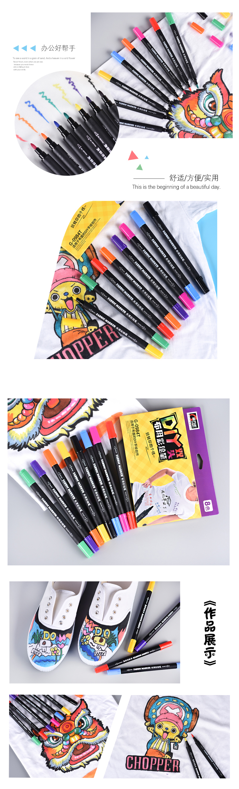 布用彩绘笔软硬双头8色套装记号笔(G-0984T)