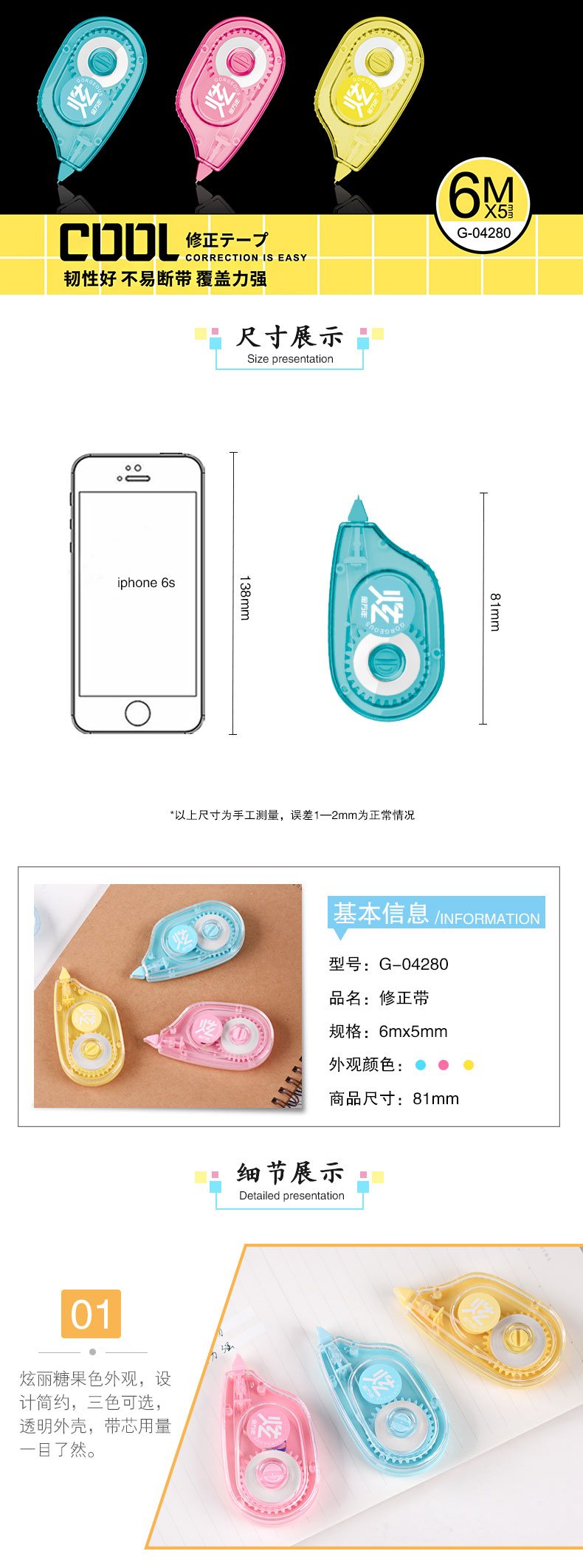 多彩酷黑1支装6m*5mm修正带(G-04280)