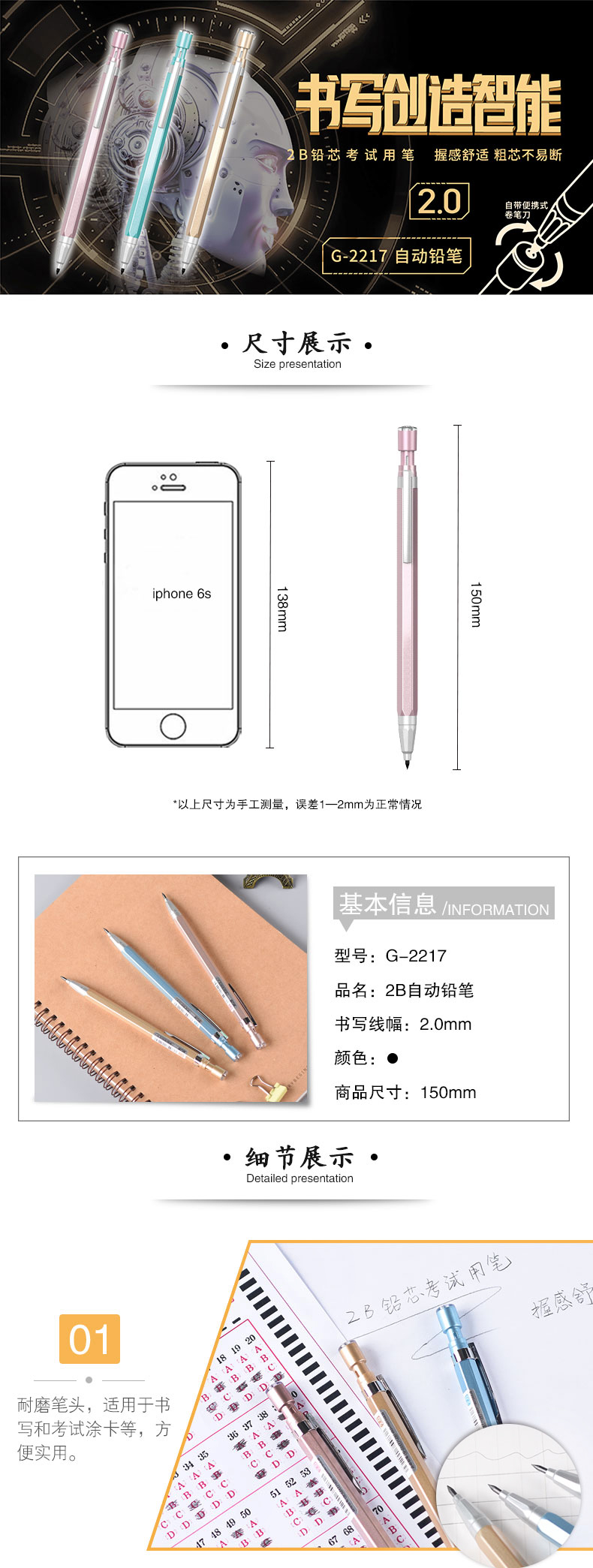 - 书写幅度:2.0mm