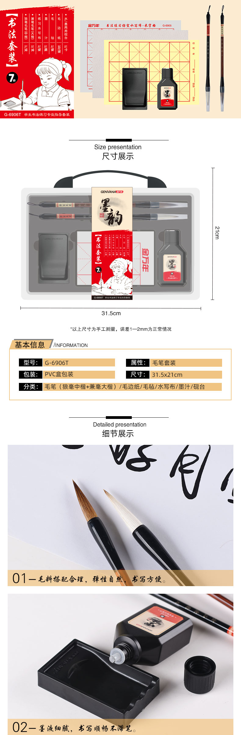 学生书法练字毛笔7件套装(G-6906T)