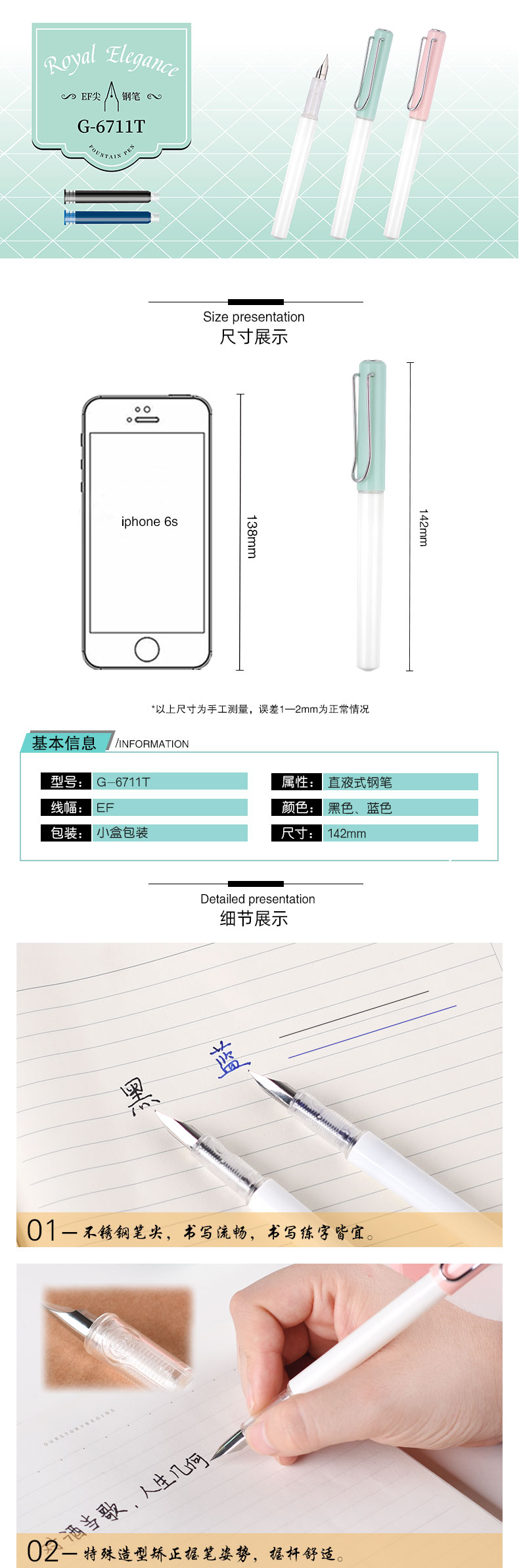 练字书法换墨囊EF型套装钢笔(G-6711T)