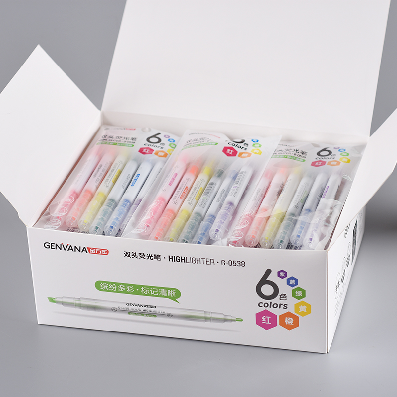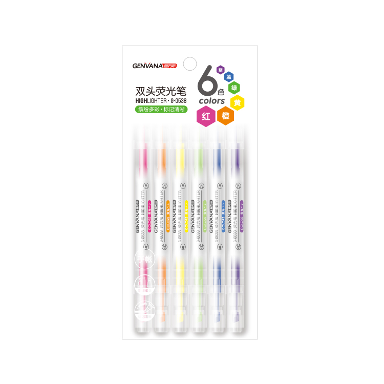 双头单色普通6色套装荧光笔(G-0538)