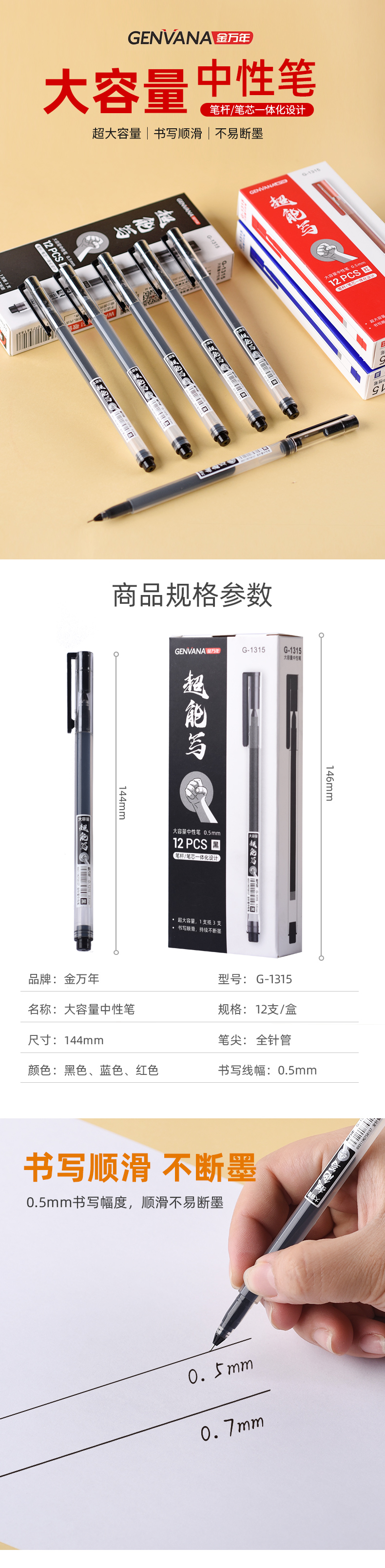 超能写大容量0.5全针中性笔