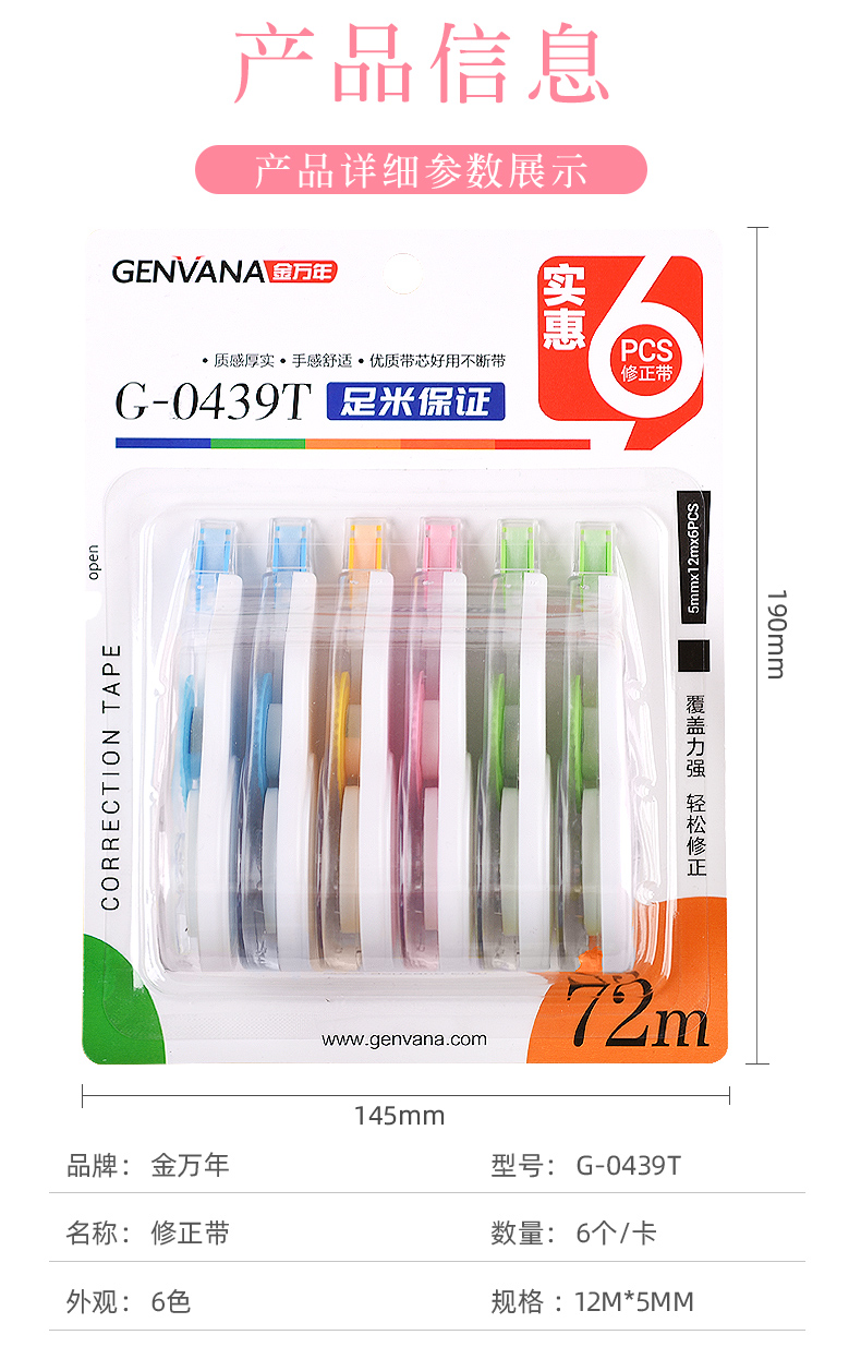 实惠装6支装12mX5mm修正带