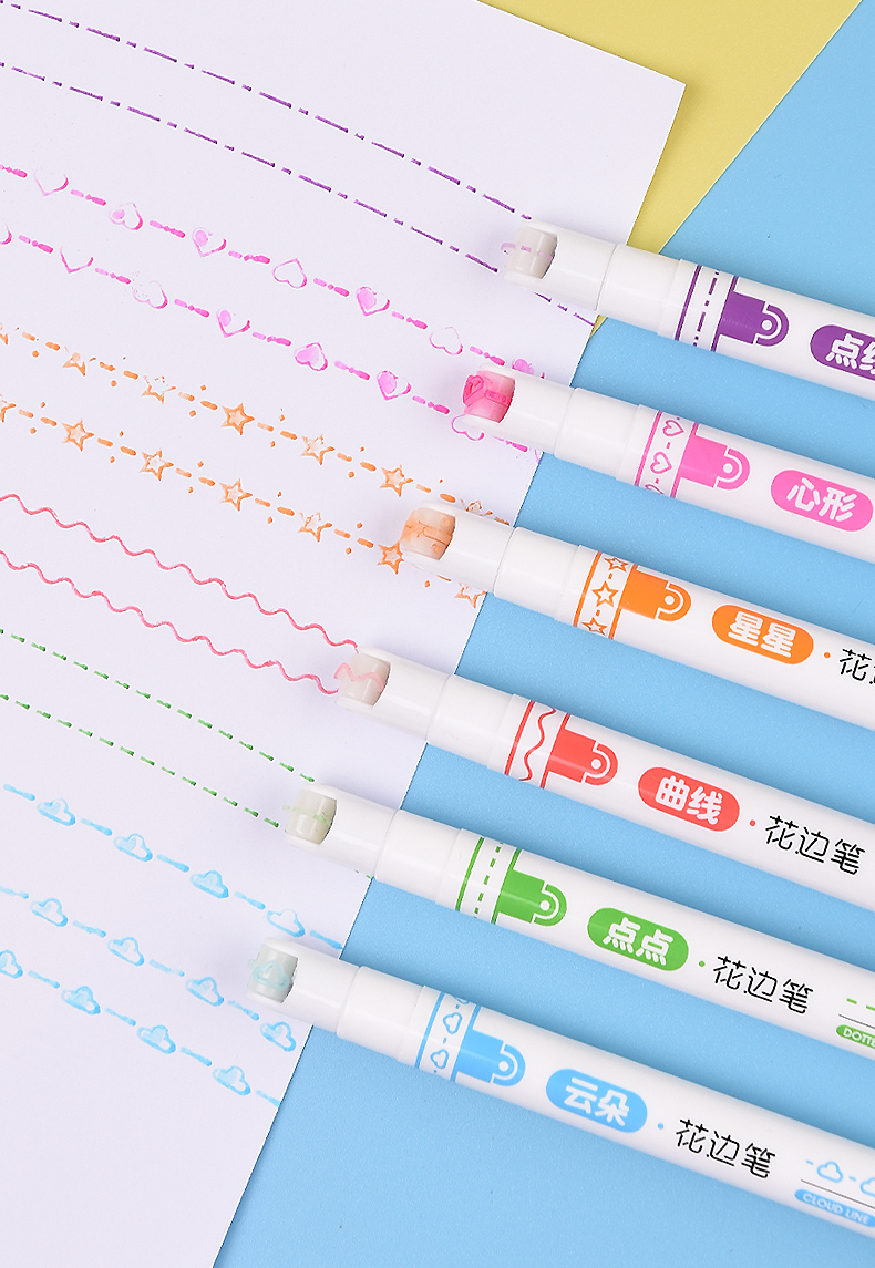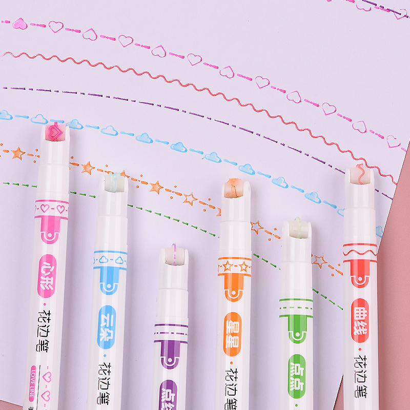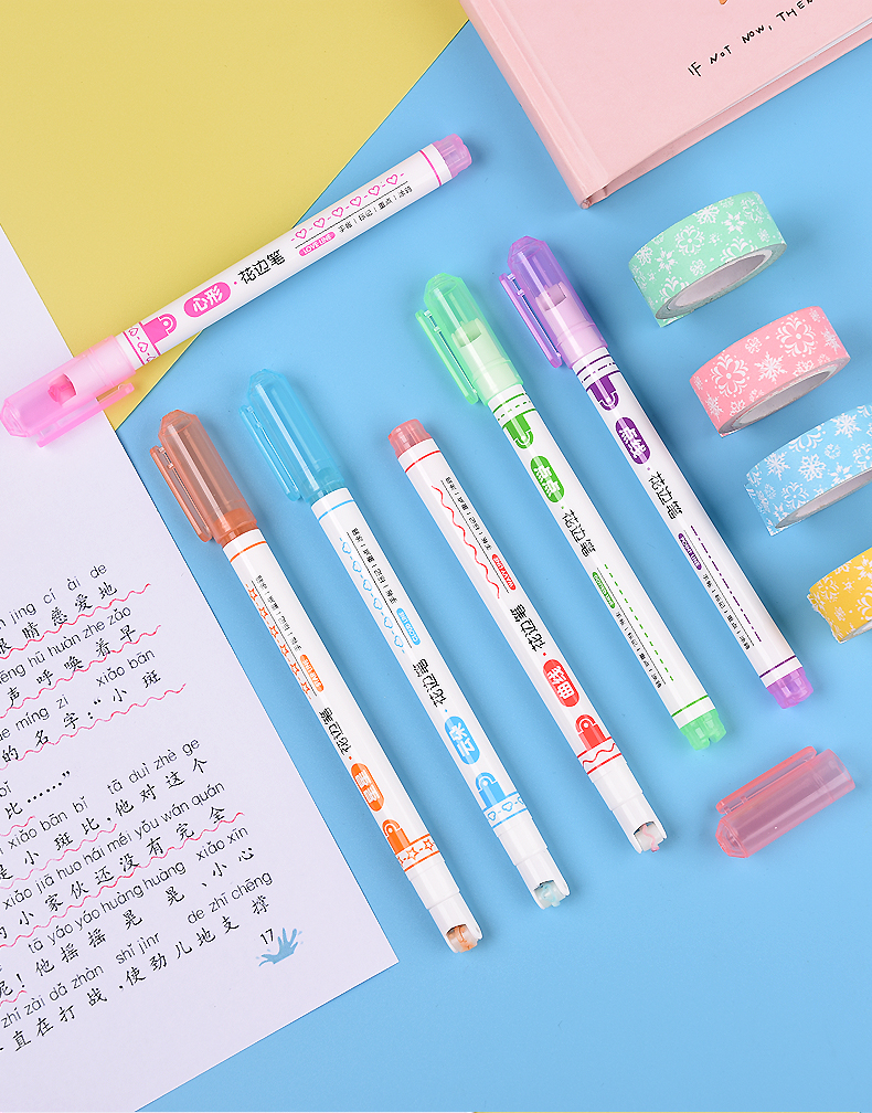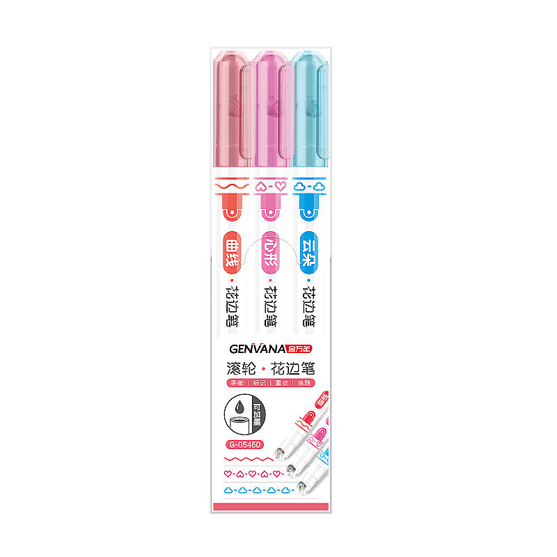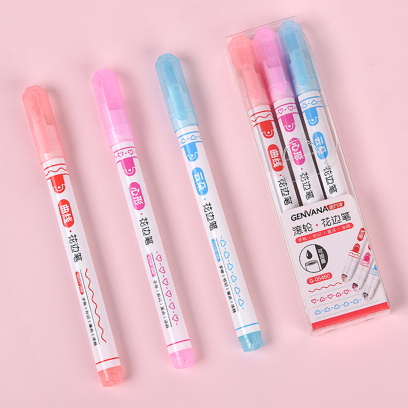 花边滚轮曲线心形云朵3色荧光笔