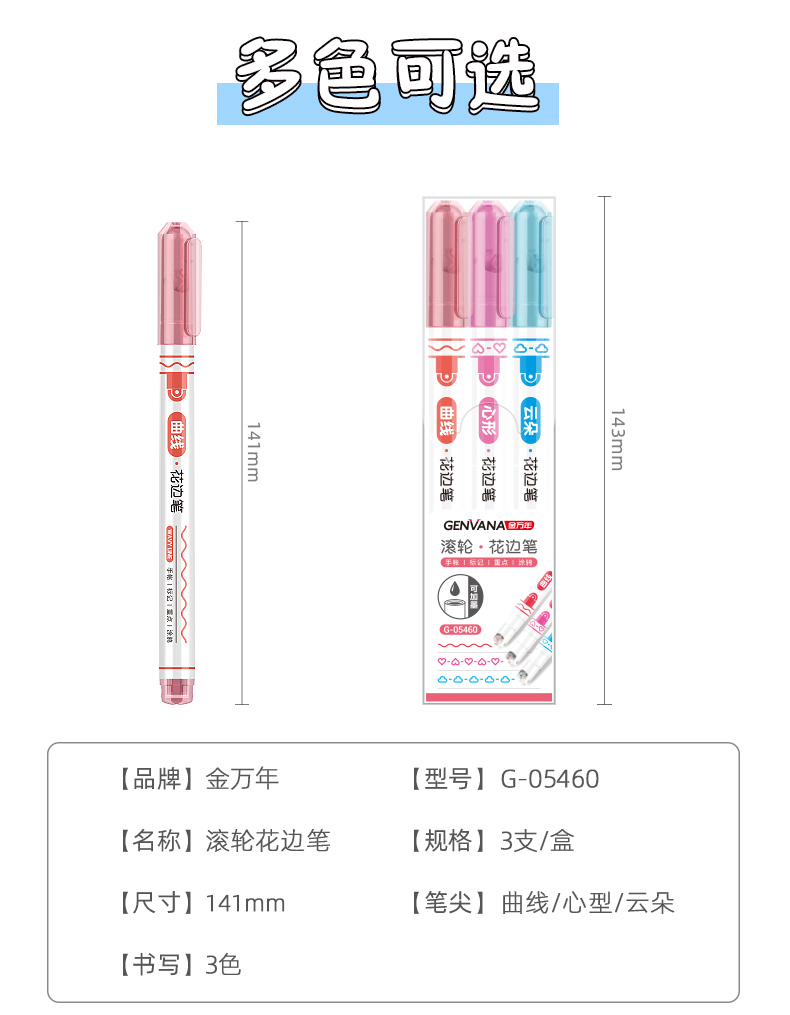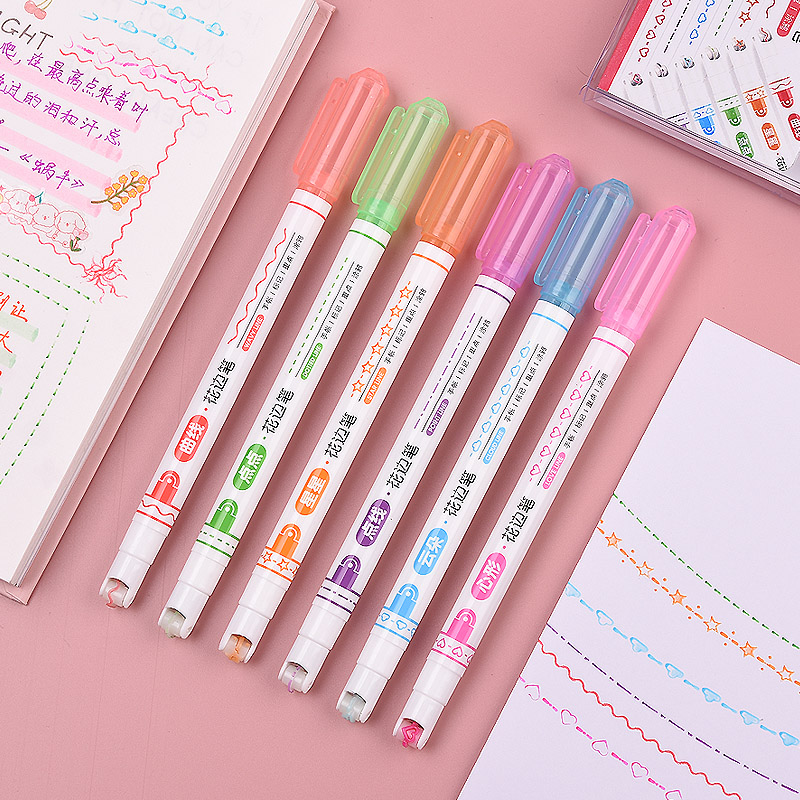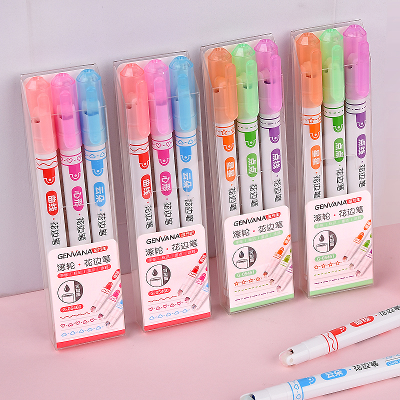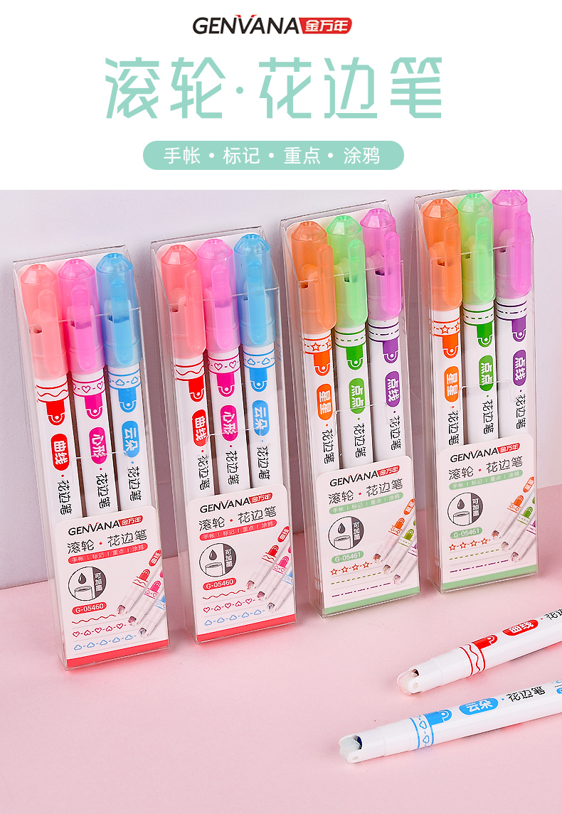 花边滚轮曲线心形云朵3色荧光笔