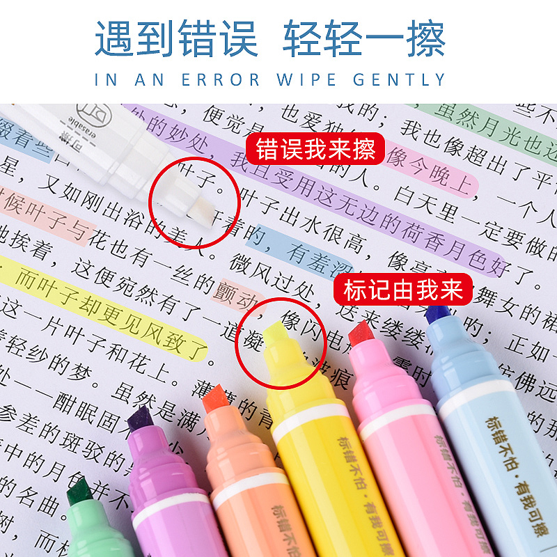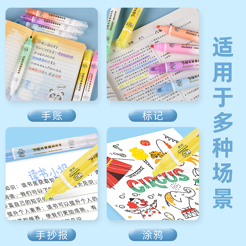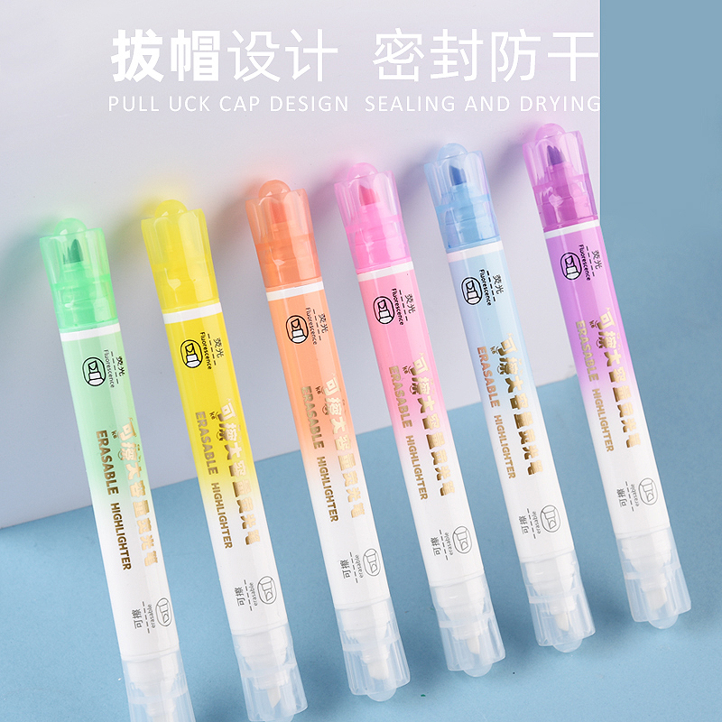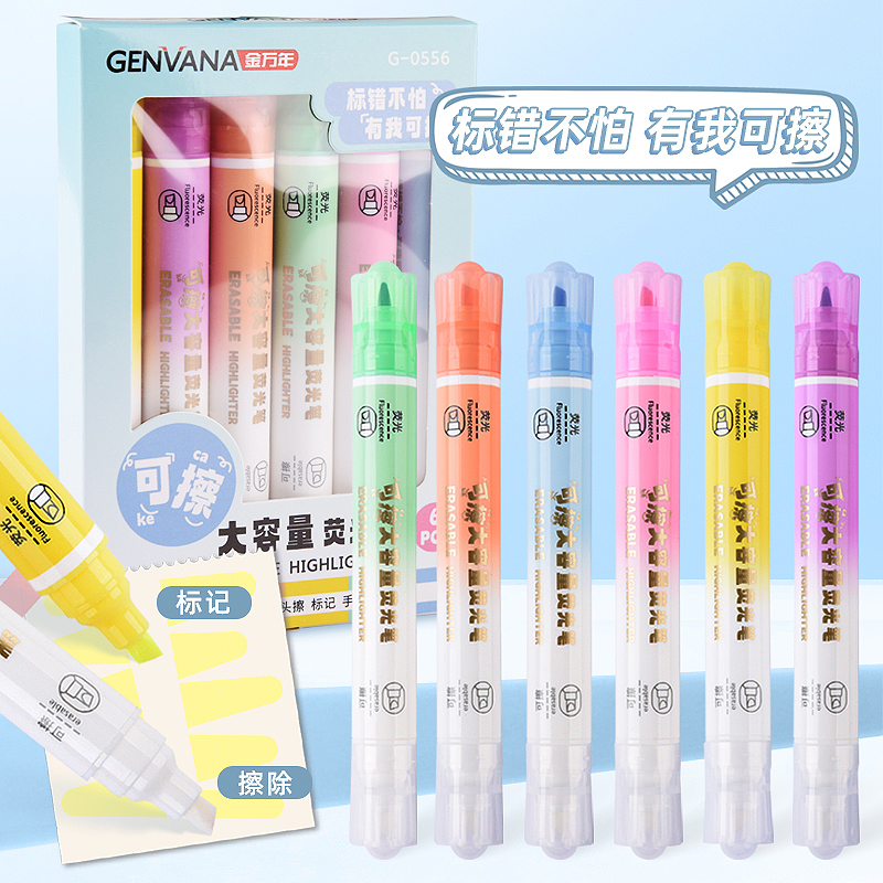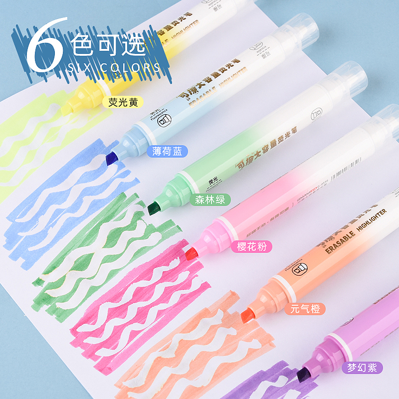 双头可擦大容量标记6色装荧光笔