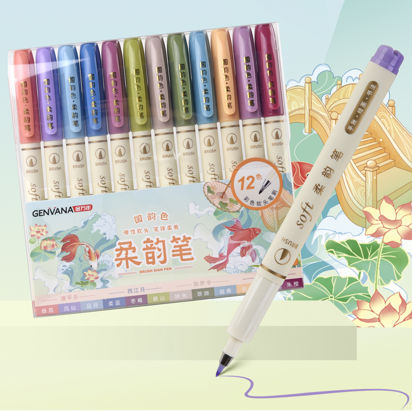 柔韵笔国韵色12色套装小楷秀丽笔