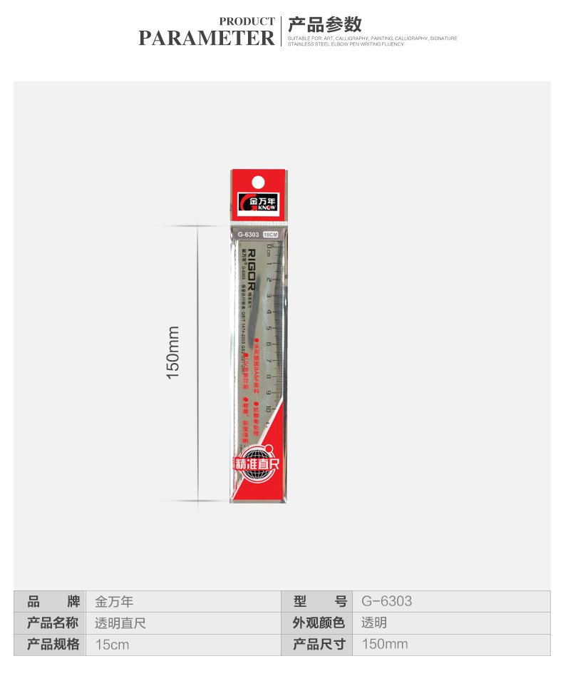 全透15cm亮银袋装直尺