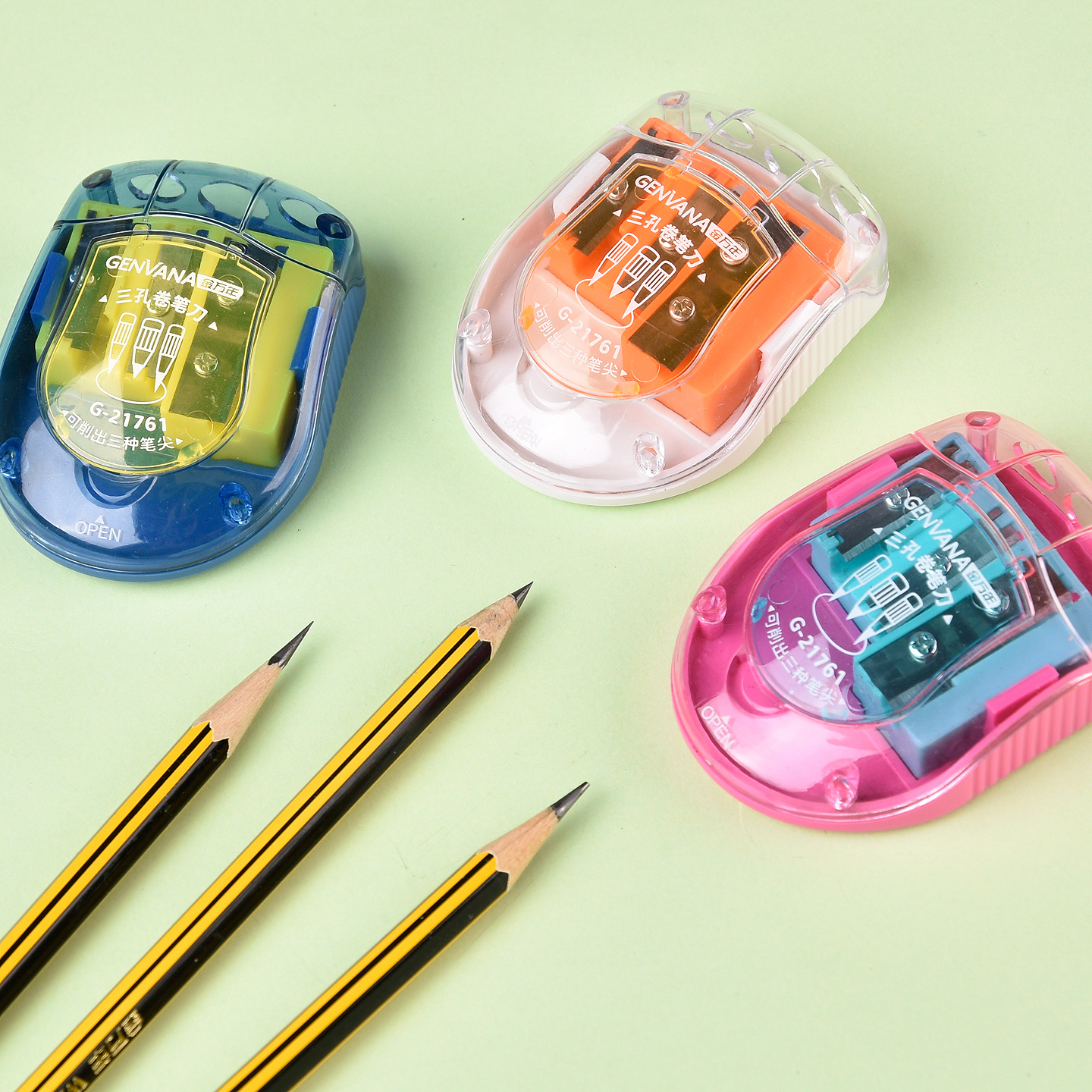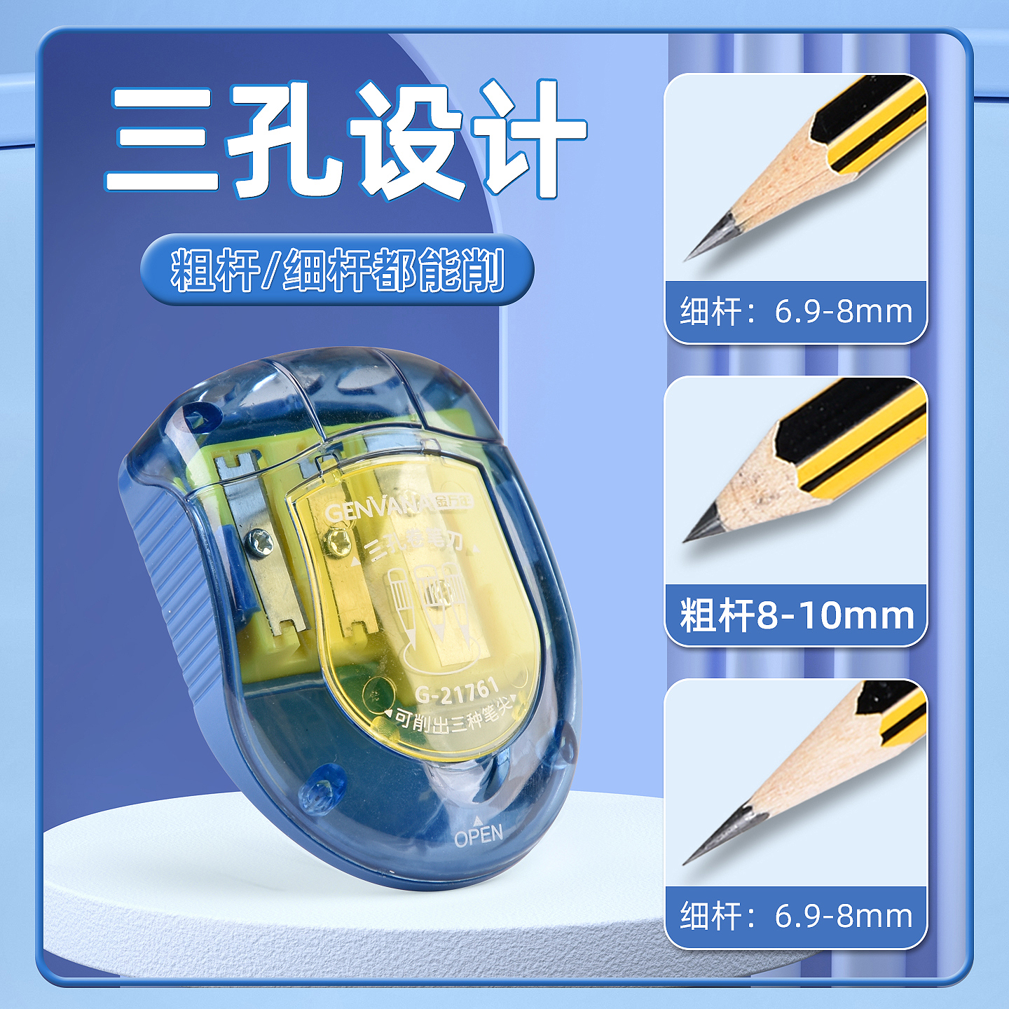 三孔大口径粗细木杆铅笔卷笔刀