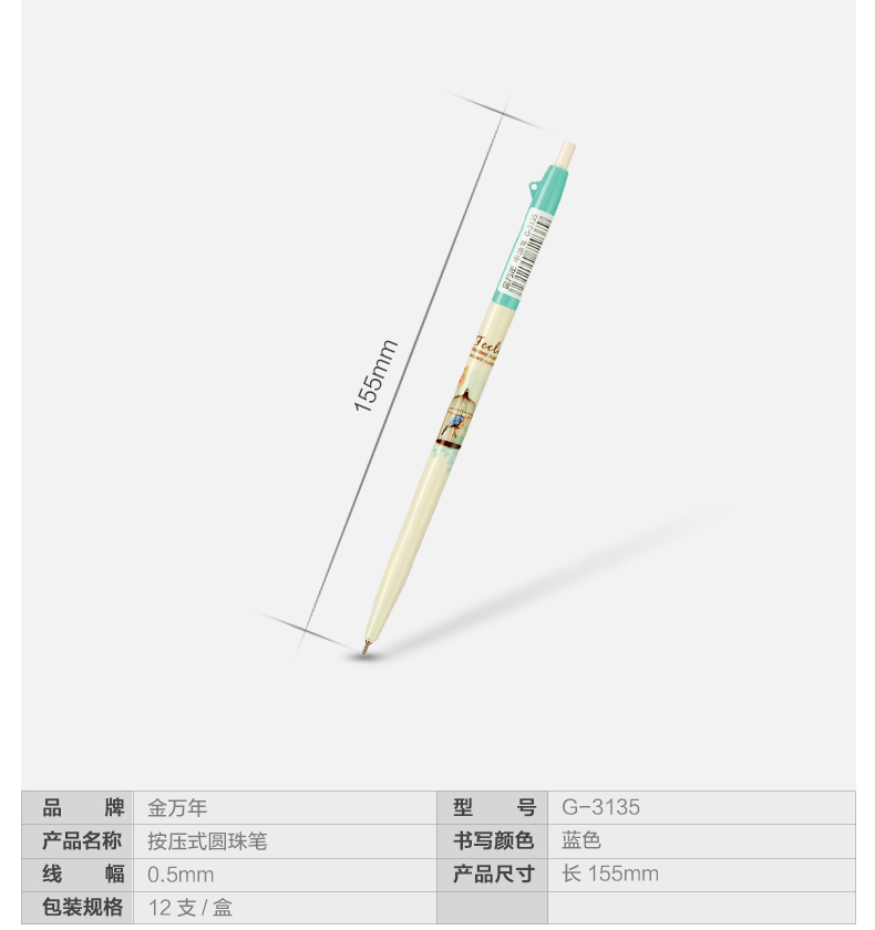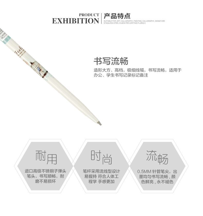 0.5MM半针复古长杆按压中油笔