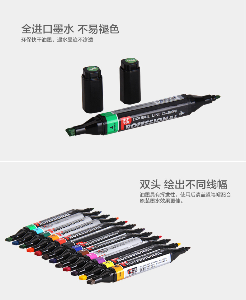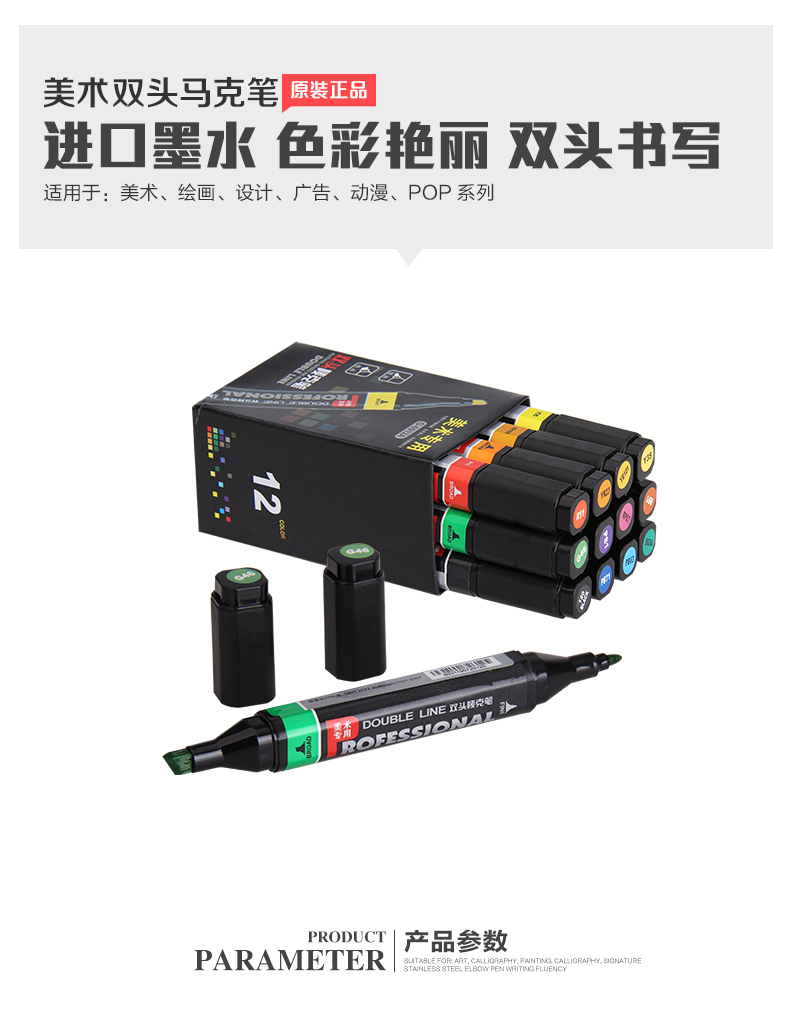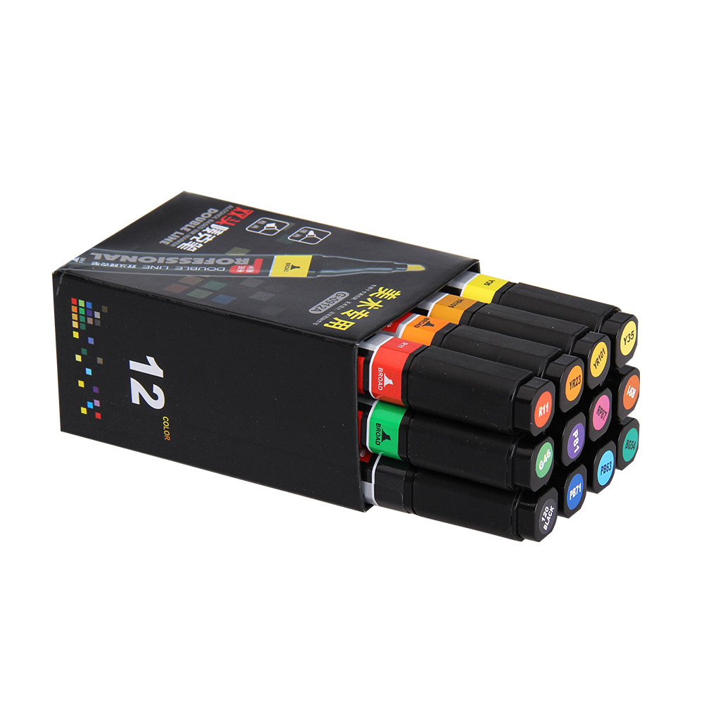 美术专用方杆12色双头唛克笔-盒装