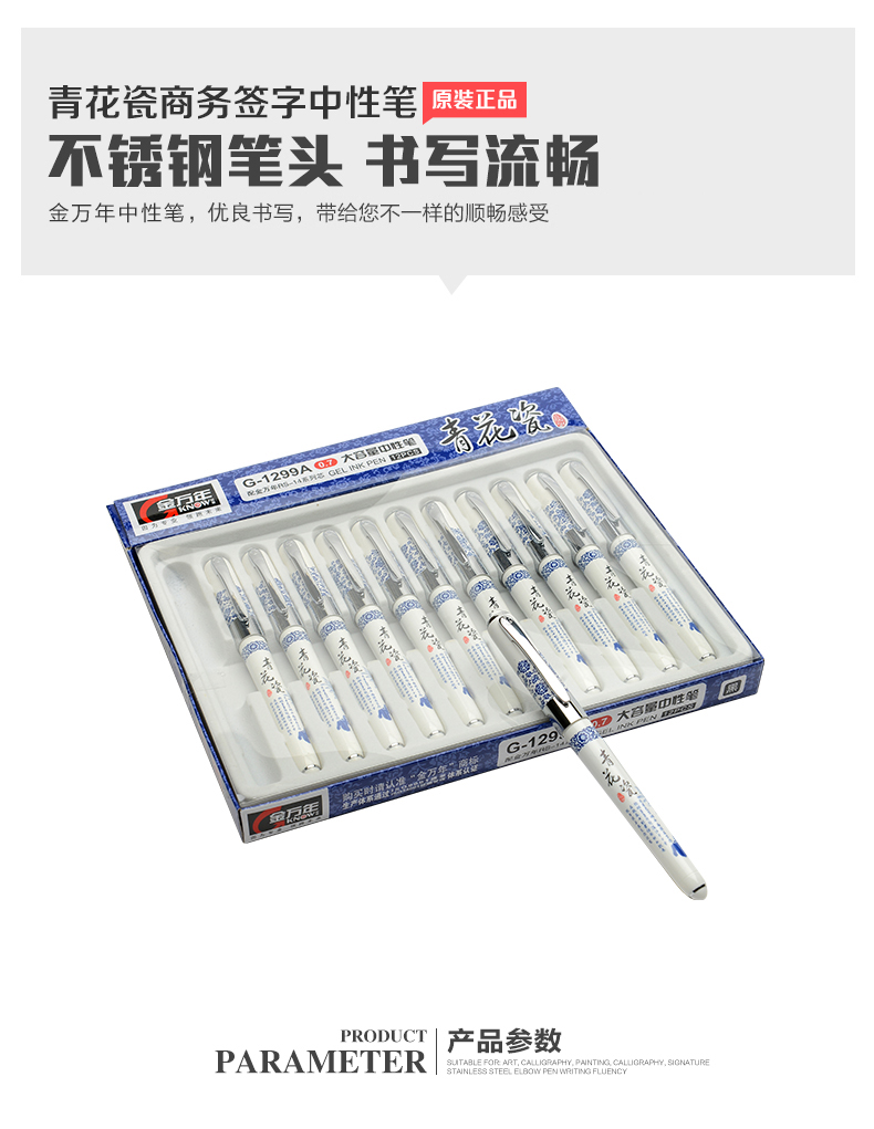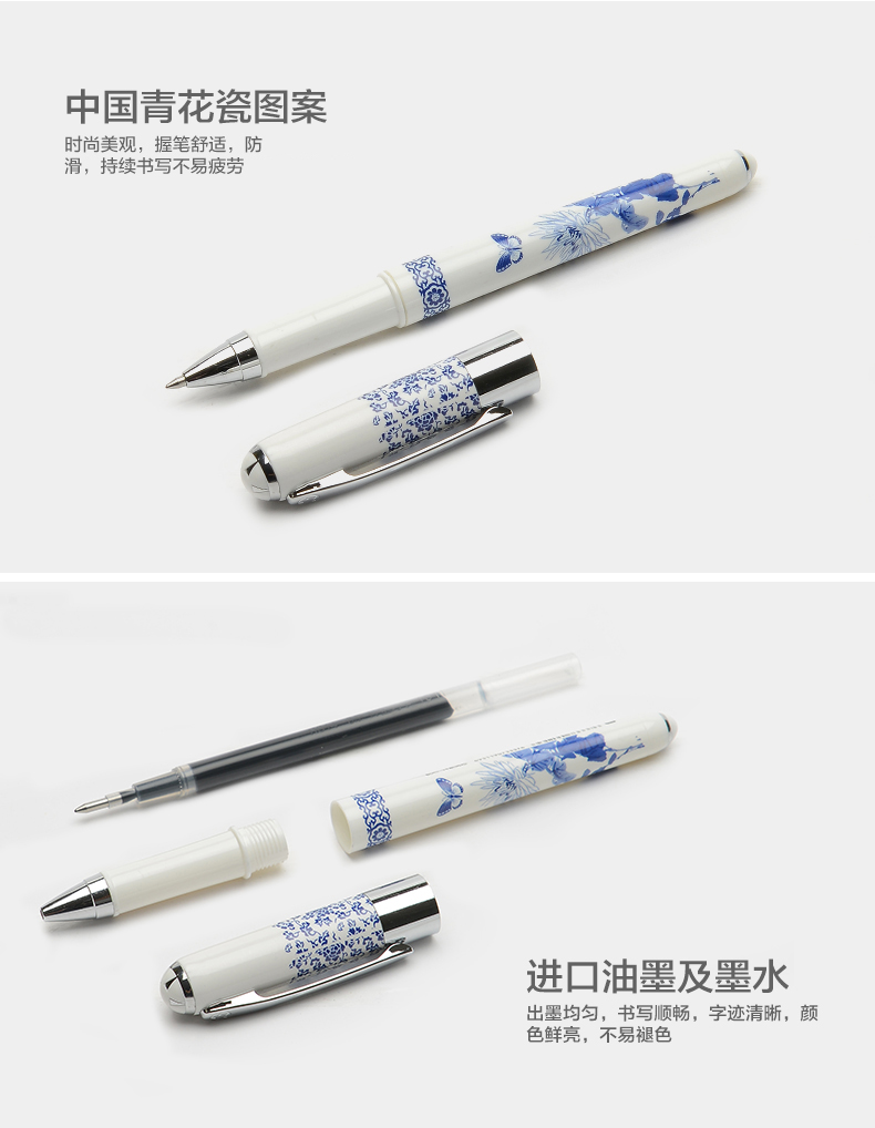 青花瓷大容量0.7MM子弹配RS14系列芯拔帽中性笔