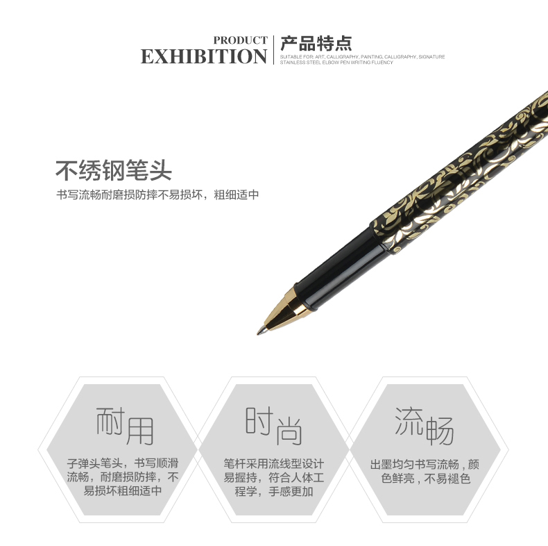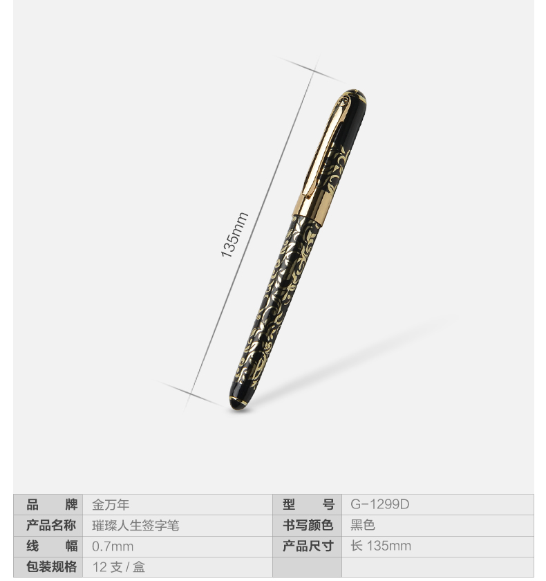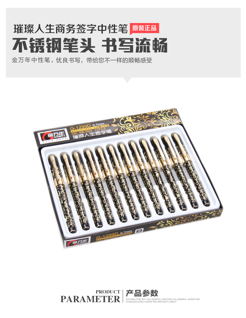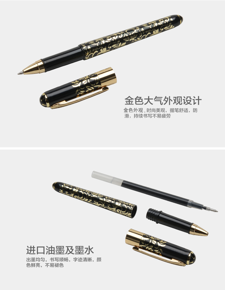 黑金0.7子弹头配RS14系列芯金色夹拔帽中性笔