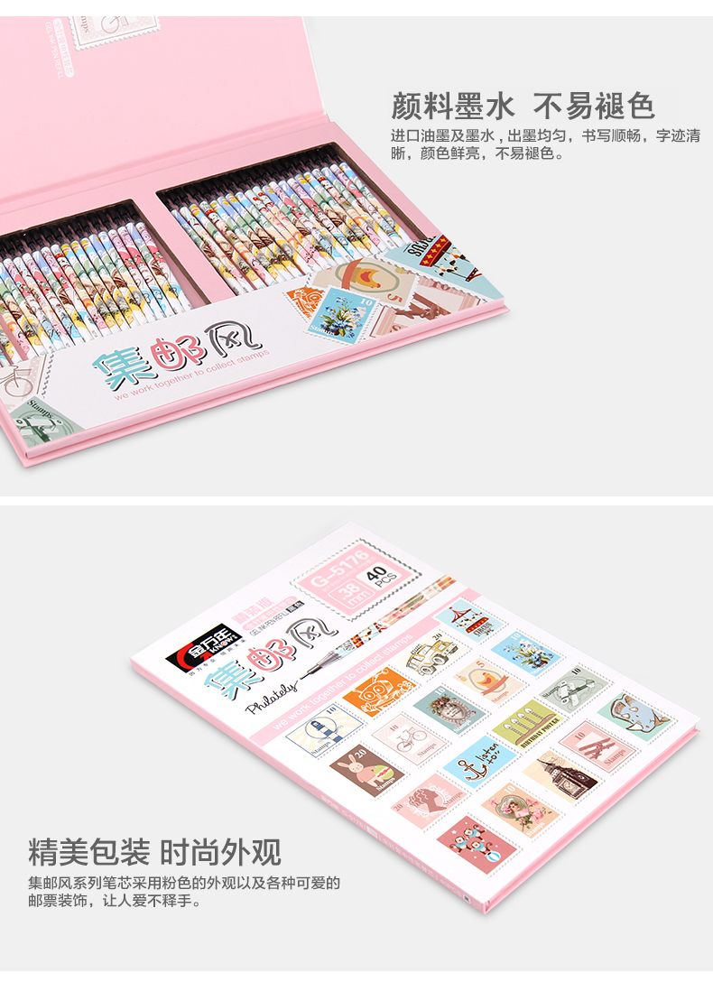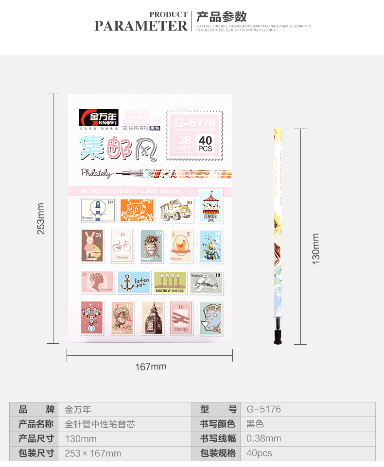 RS06芯集邮风书本型0.38全针管中性笔芯